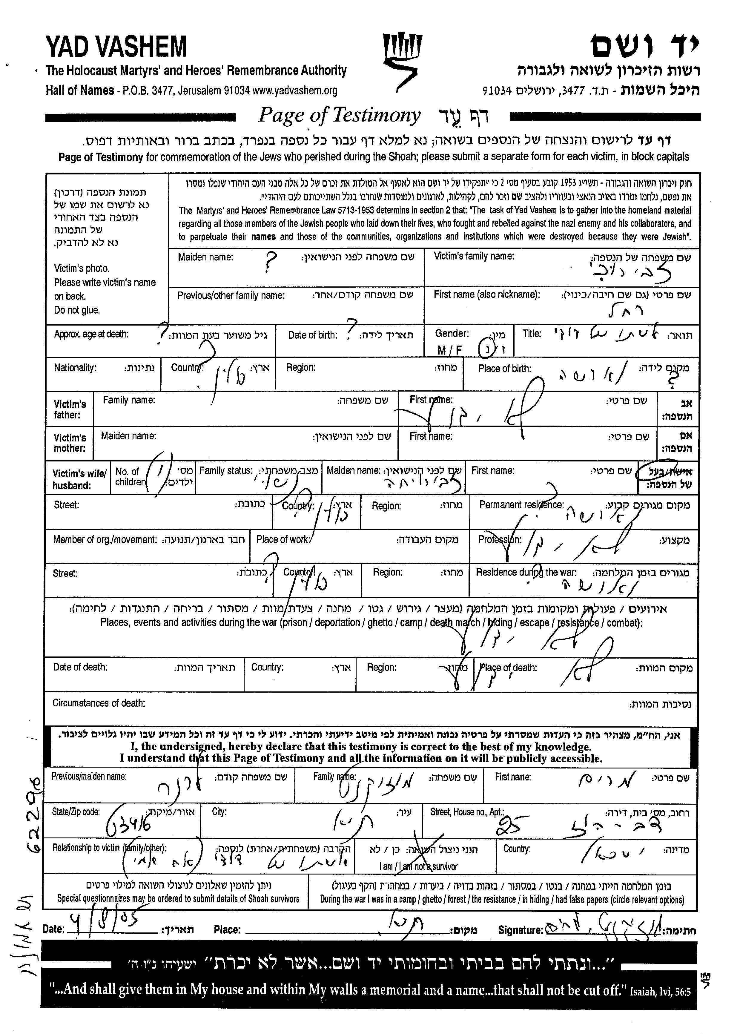 Яд Вашем - Листы свидетельских показаний Мемориального фонда