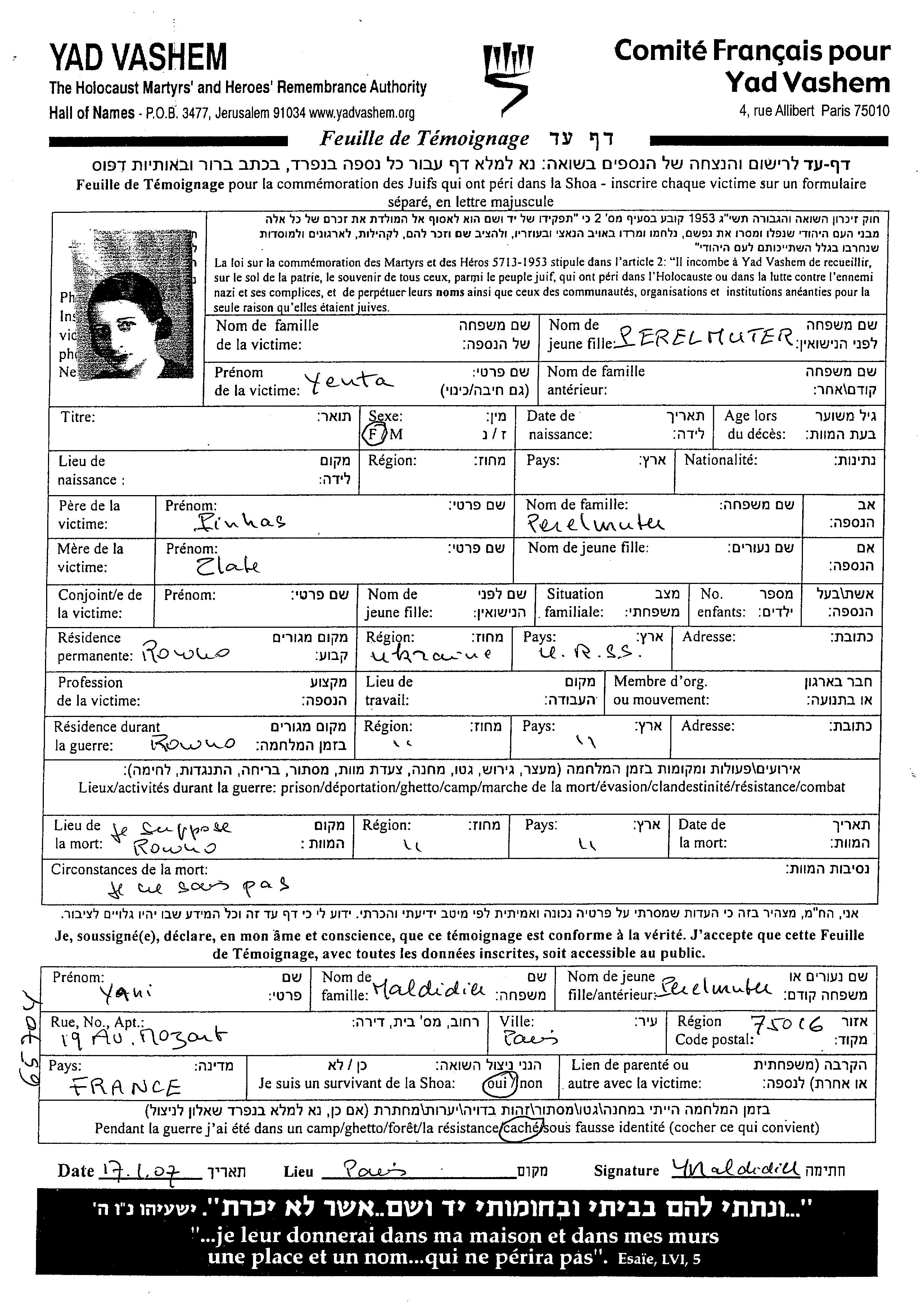 Яд Вашем - Листы свидетельских показаний Мемориального фонда