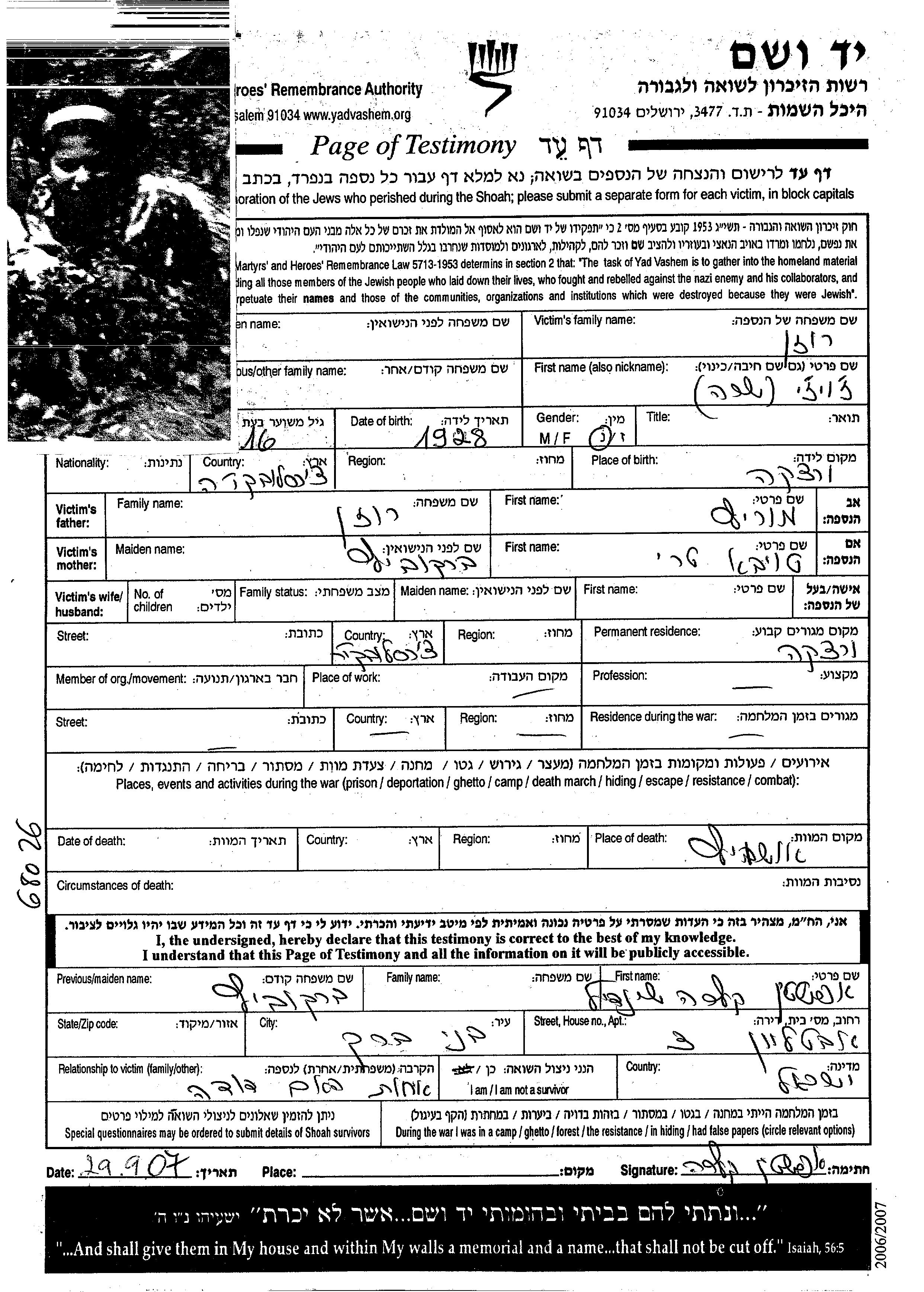 Розен | Жужи Сара | 1928 | Верецке, Чехословакия | Лист свидетельских показаний |