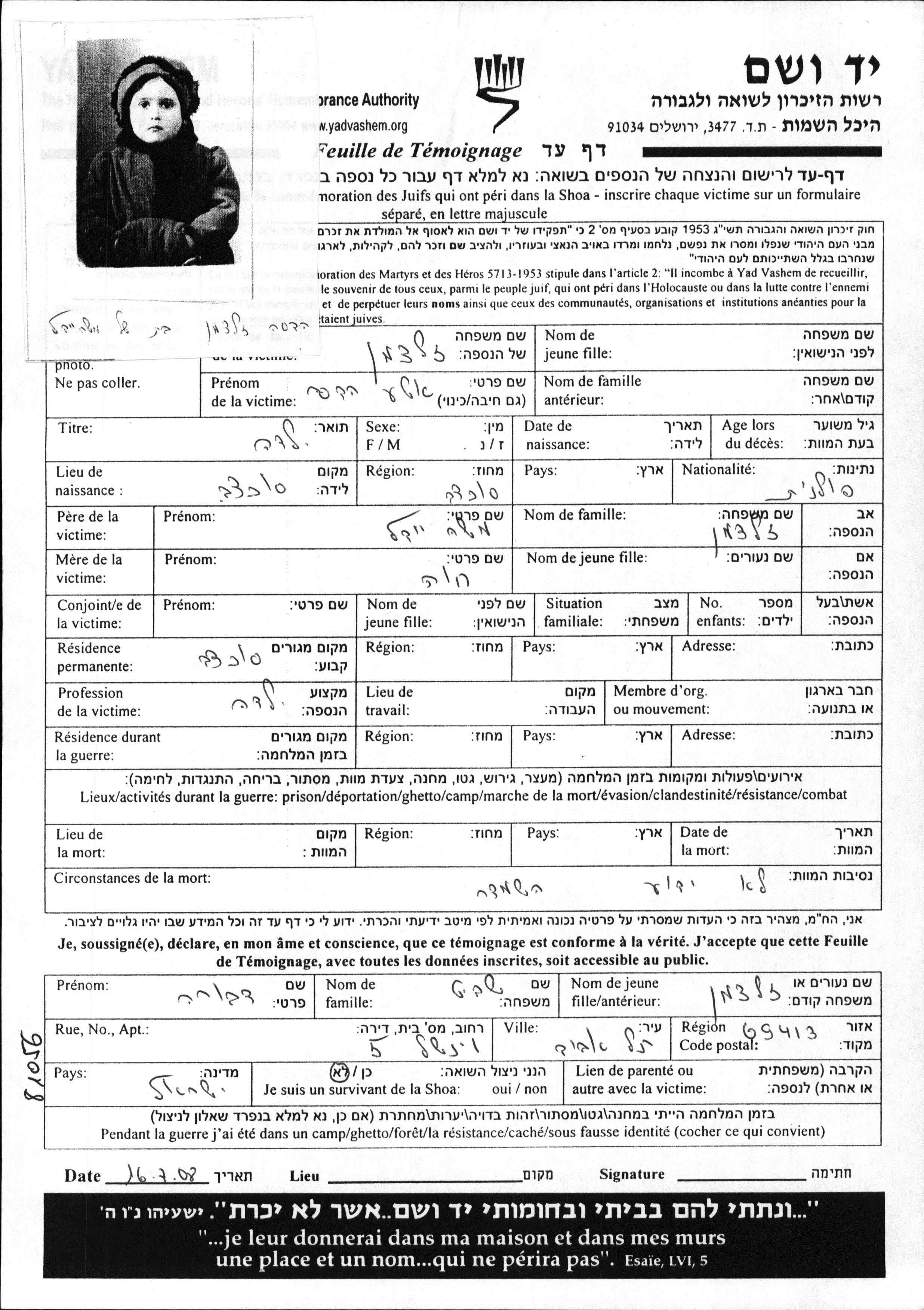 Яд Вашем - Листы свидетельских показаний Мемориального фонда