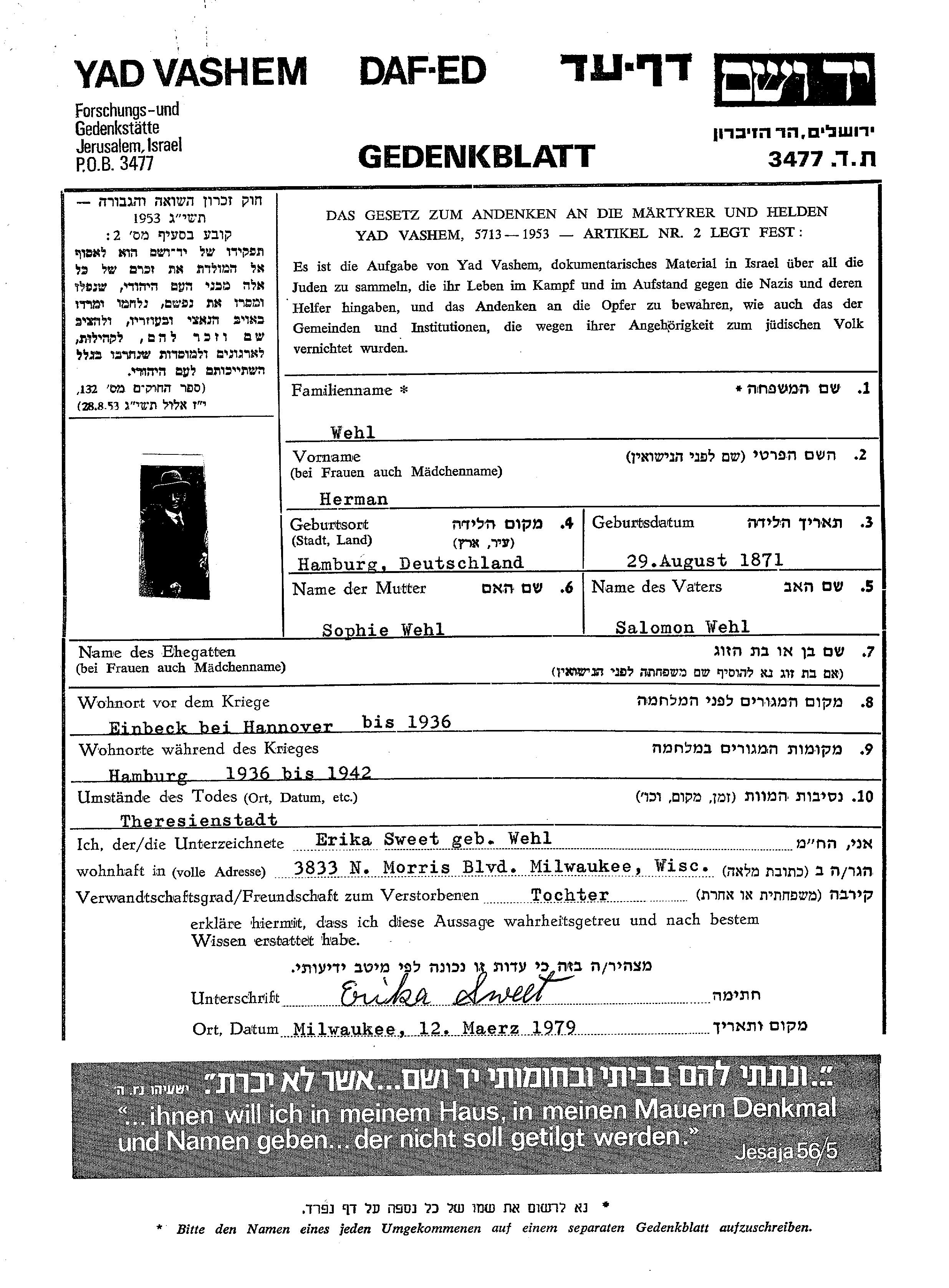 Вель | Херман | 1871 | Эйнбек, Германия | Лист свидетельских показаний |