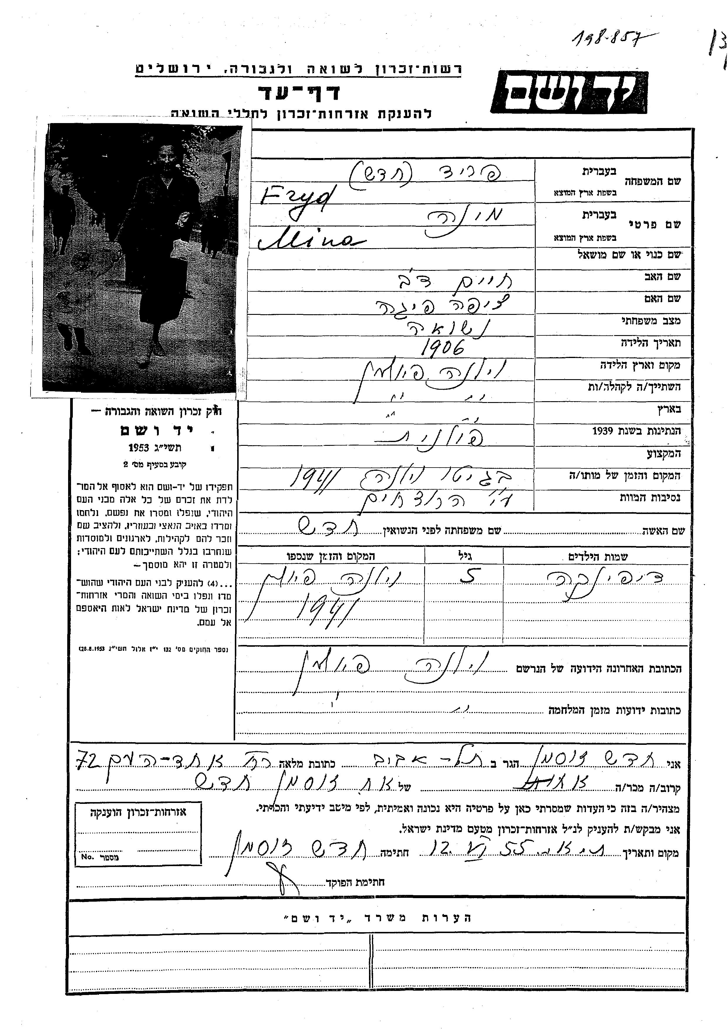 Яд Вашем - Листы свидетельских показаний Мемориального фонда