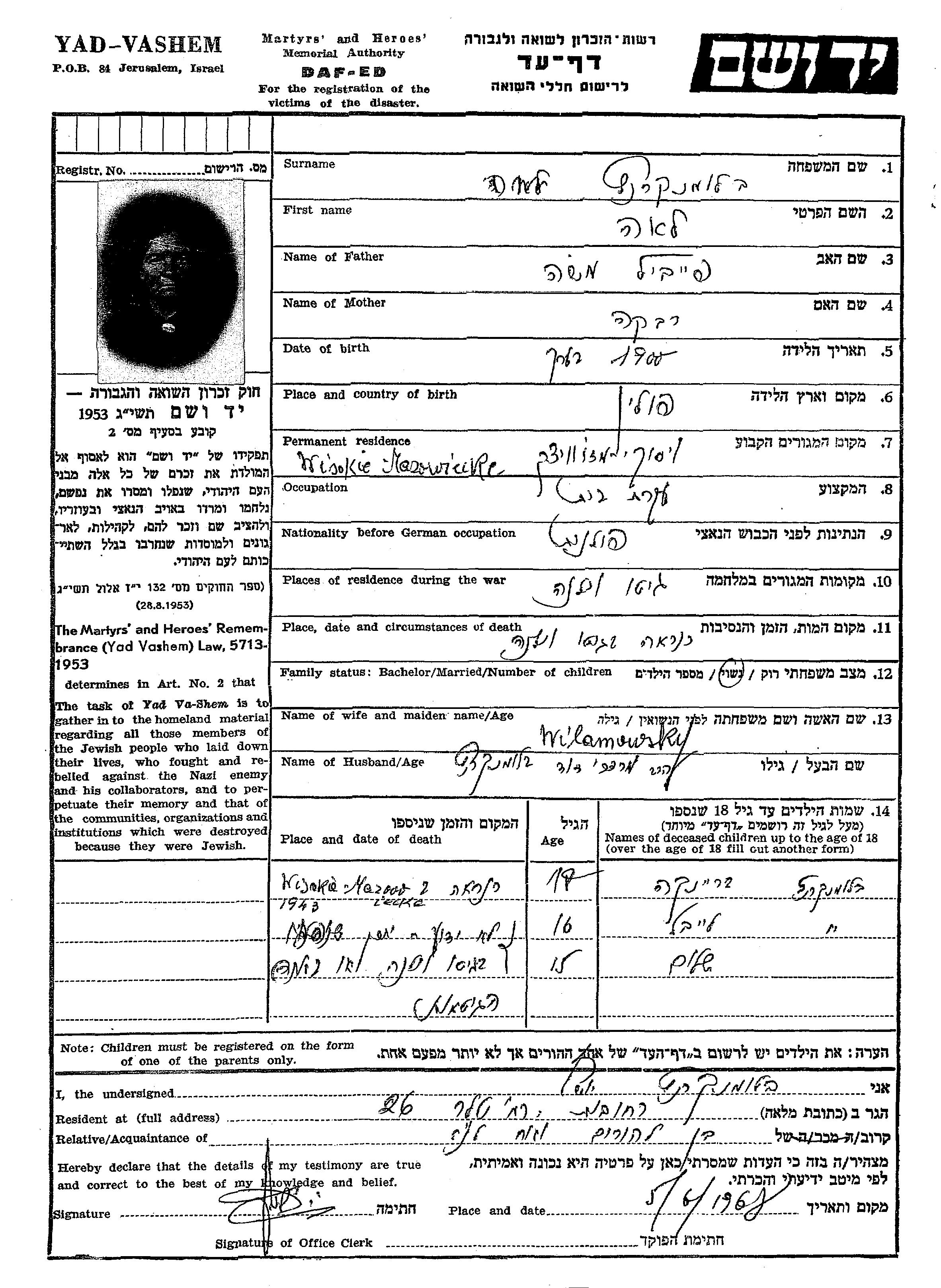 Яд Вашем - Листы свидетельских показаний Мемориального фонда