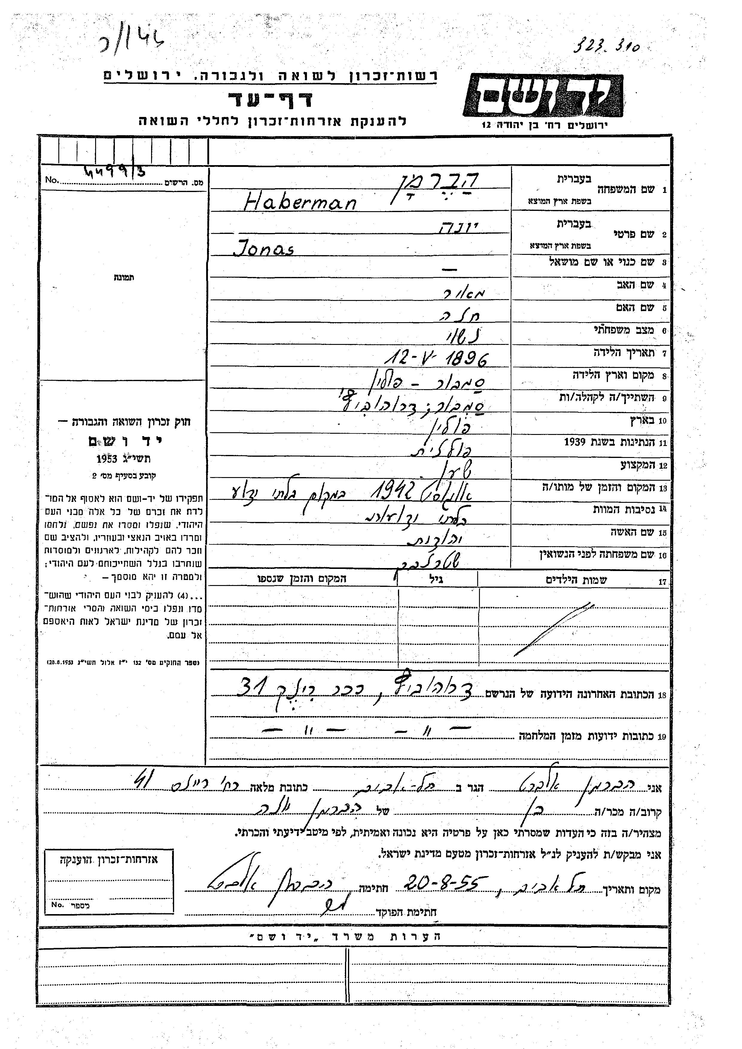 Хаберман | Йонас | 1896 | Дрогобыч, Польша | Photos |