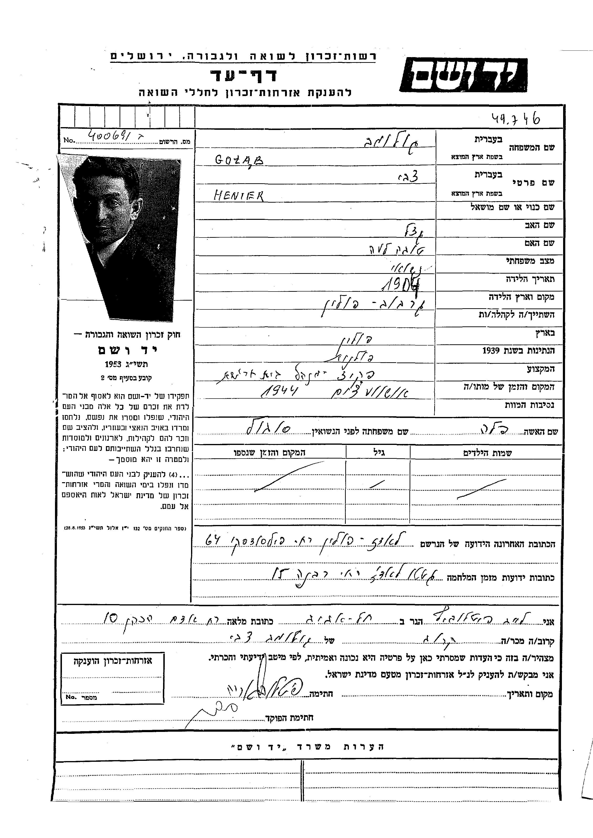 Яд Вашем - Листы свидетельских показаний Мемориального фонда