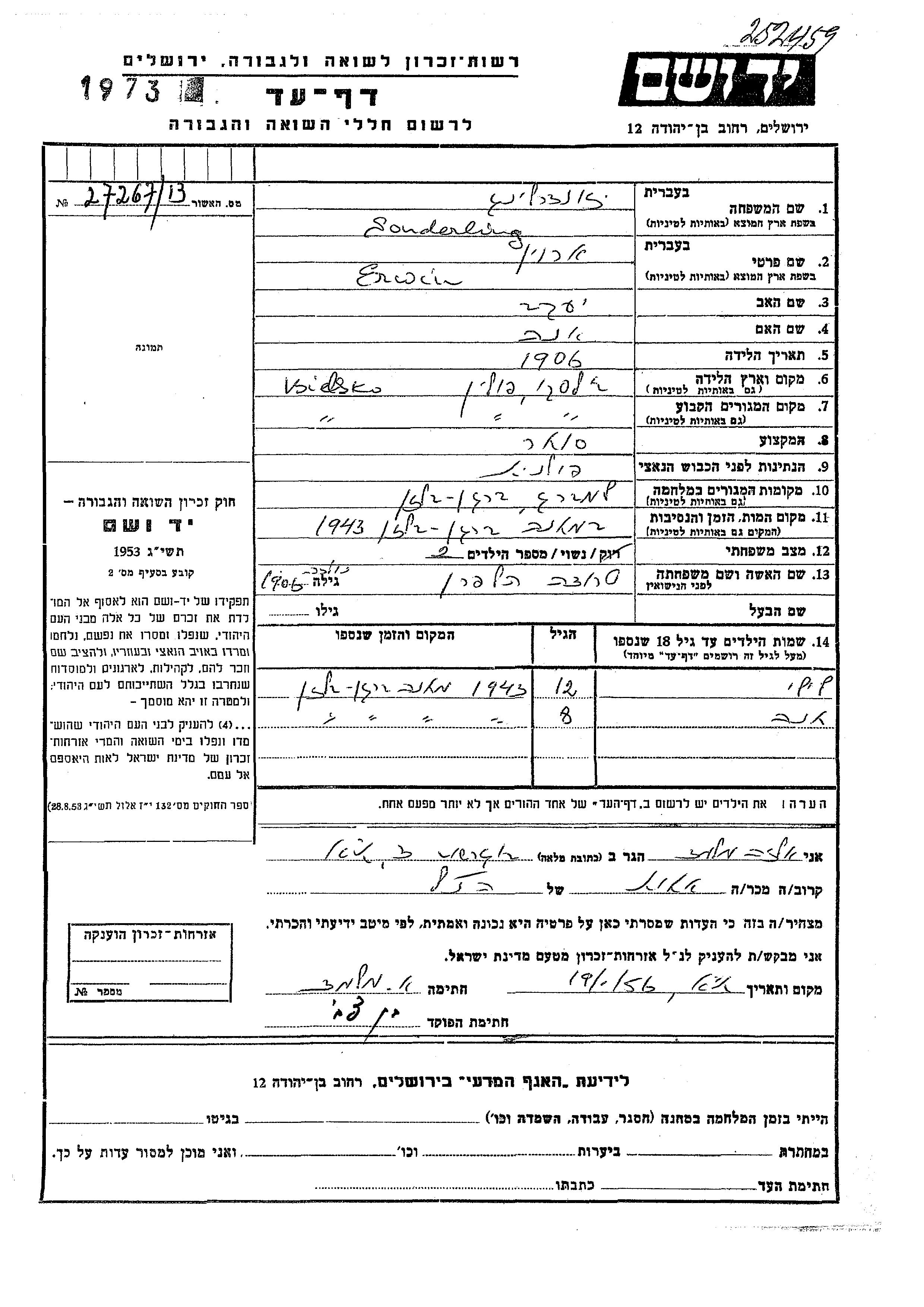 | Сондерлинг Зондерлинг | Лили | Бельско, Польша | Лист свидетельских показаний | |