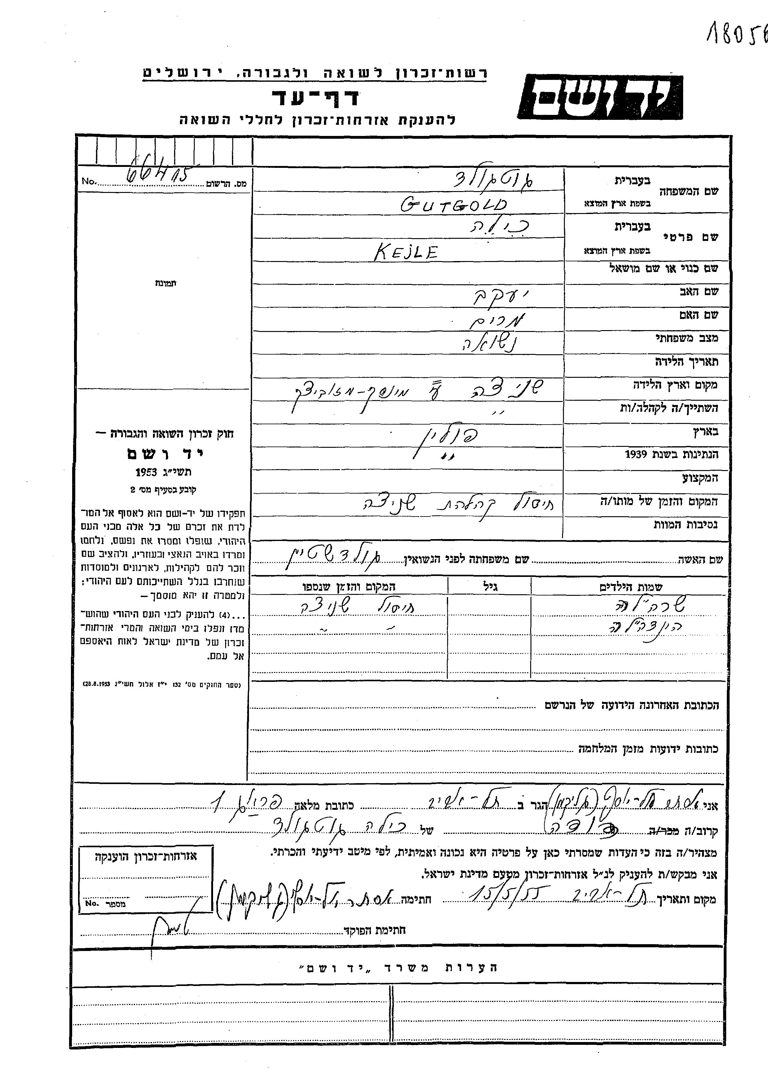 Яд Вашем - Листы свидетельских показаний Мемориального фонда