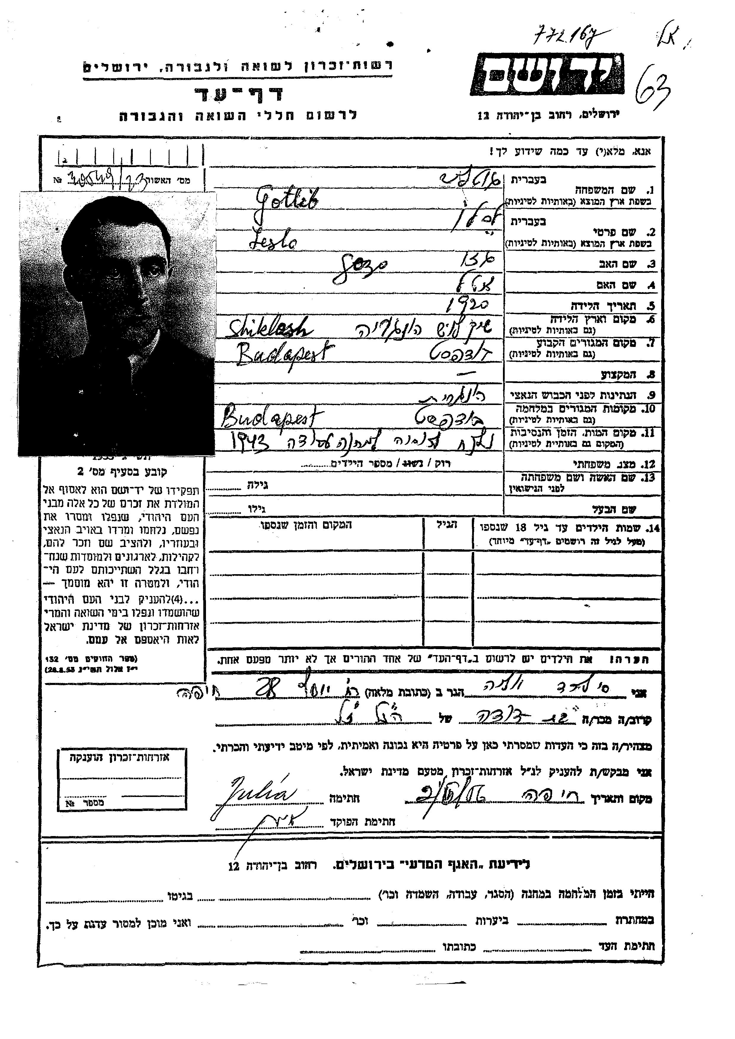 Ласло Готлиб, место рождения: Шиклош, Венгрия. Место жительства до войны: Будапешт, Венгрия.