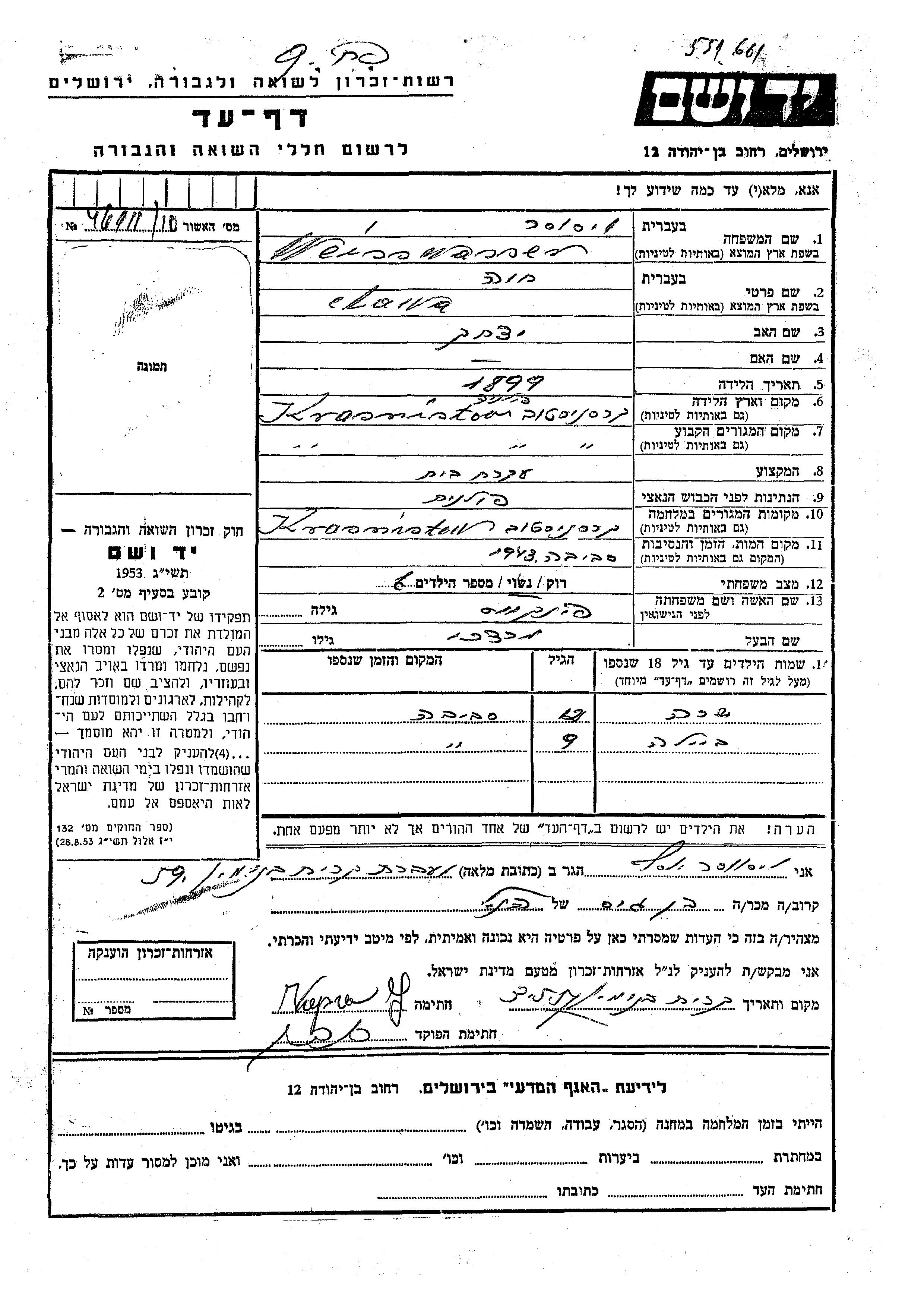 Яд Вашем - Листы свидетельских показаний Мемориального фонда
