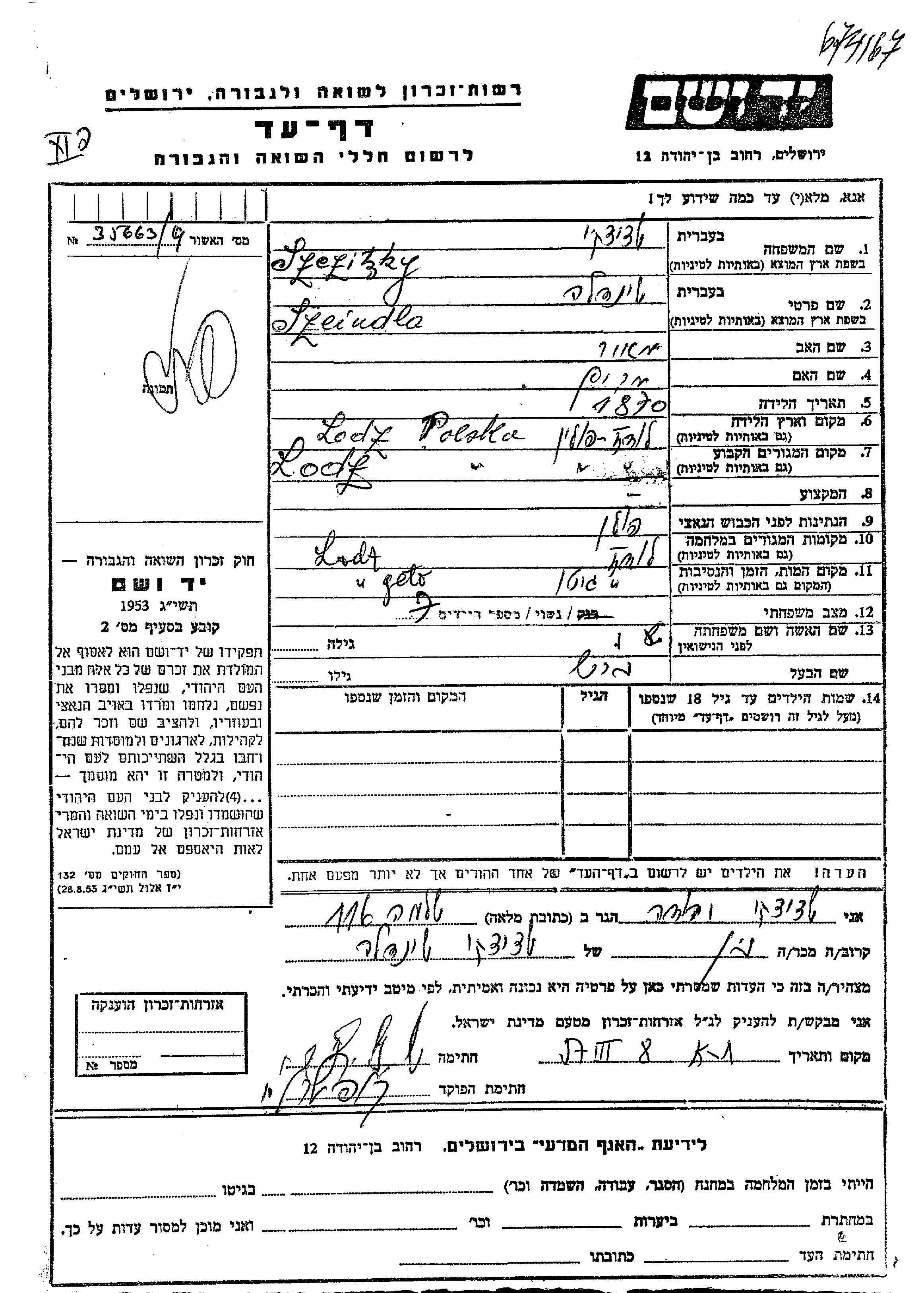 Яд Вашем - Листы свидетельских показаний Мемориального фонда