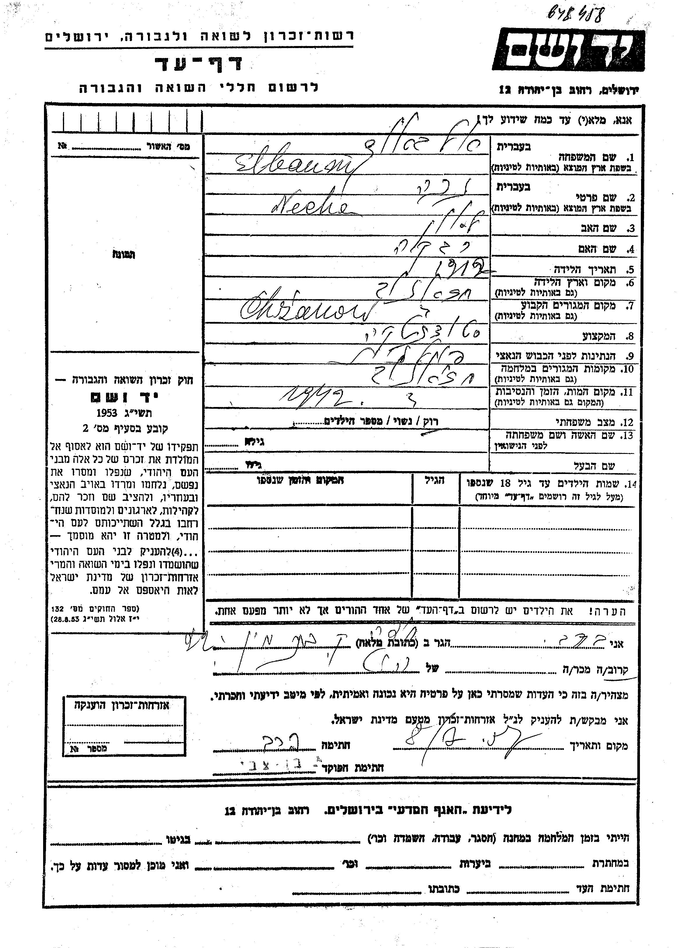 Яд Вашем - Листы свидетельских показаний Мемориального фонда
