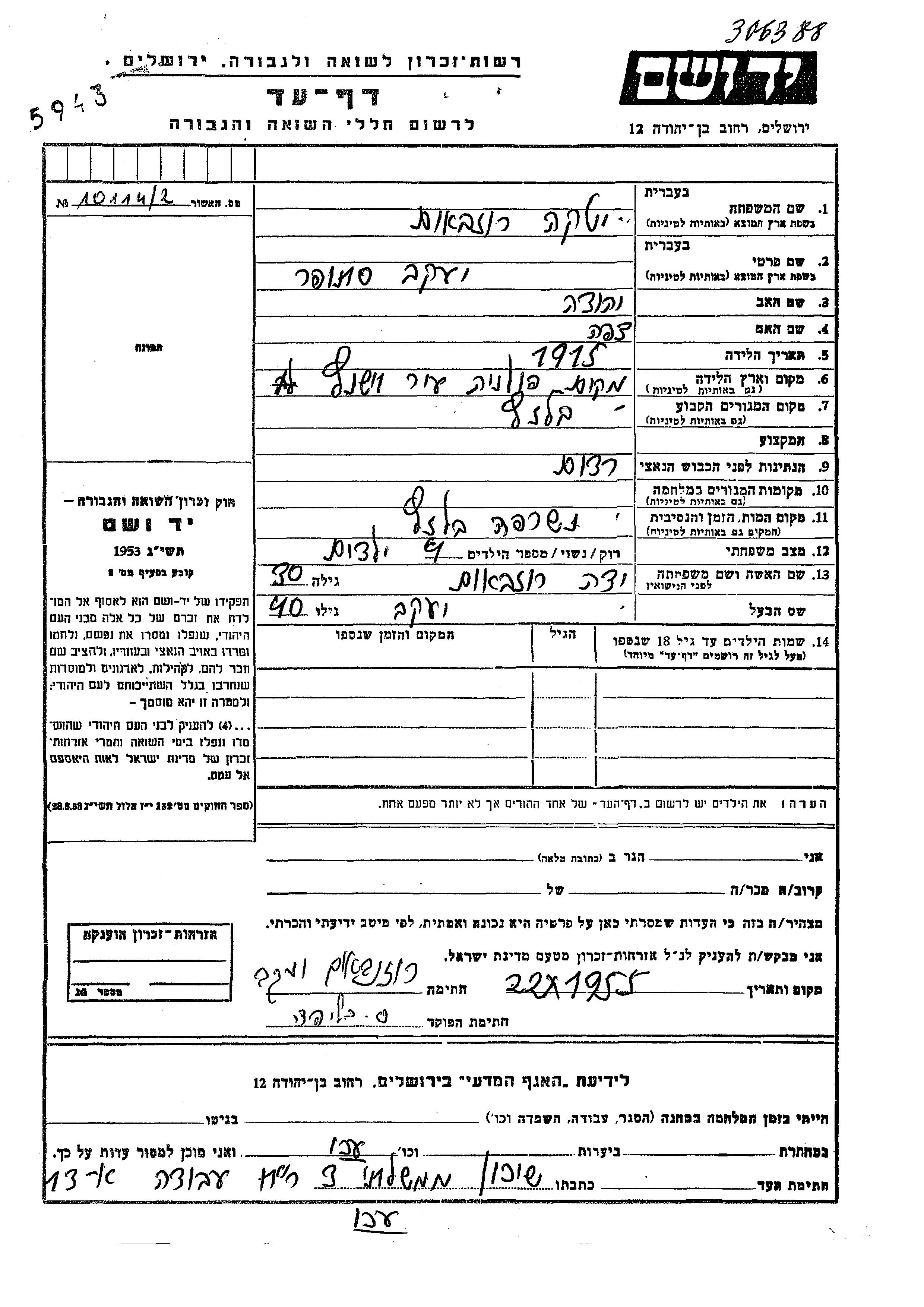 Яд Вашем - Листы свидетельских показаний Мемориального фонда
