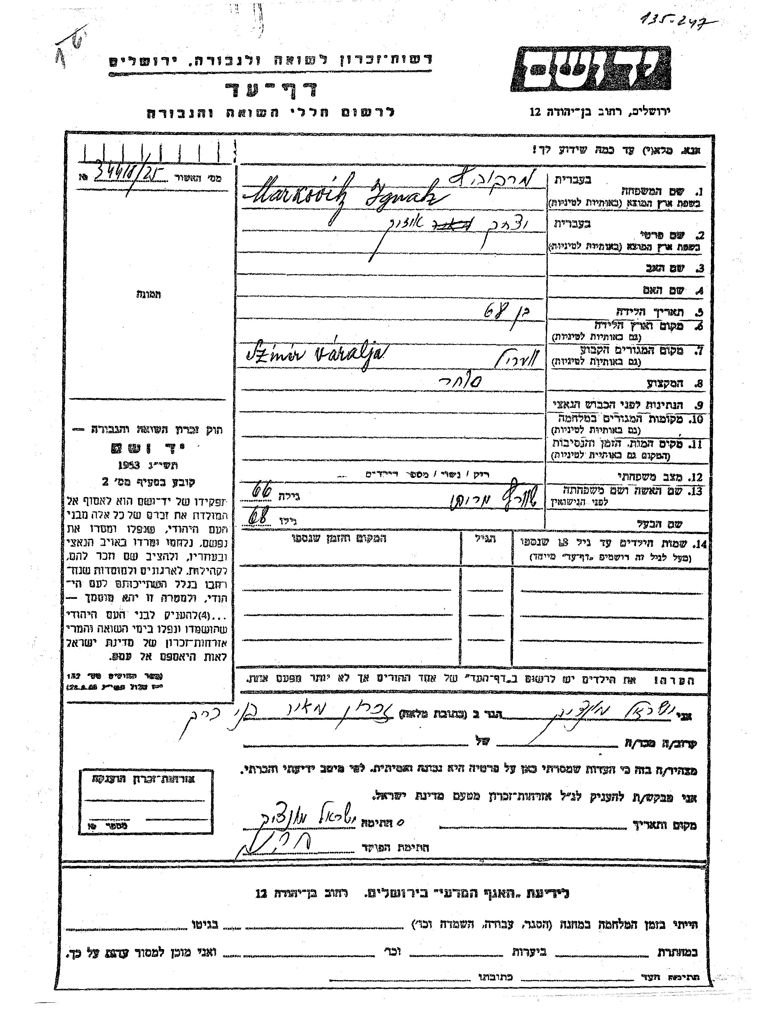 Марковиц | Ицхак Игнац | Варалья, Румыния | Лист свидетельских показаний | |
