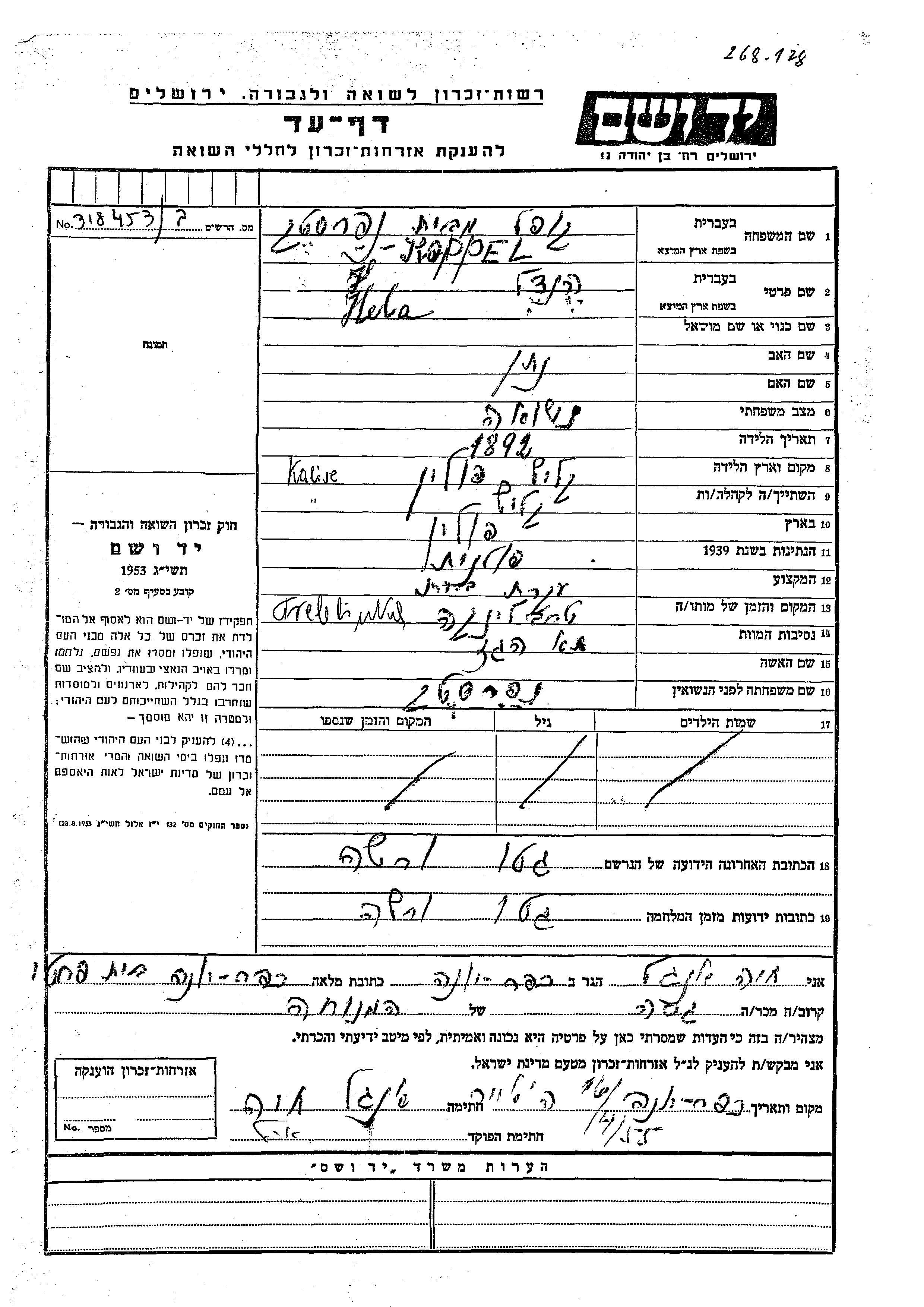 Яд Вашем - Листы свидетельских показаний Мемориального фонда