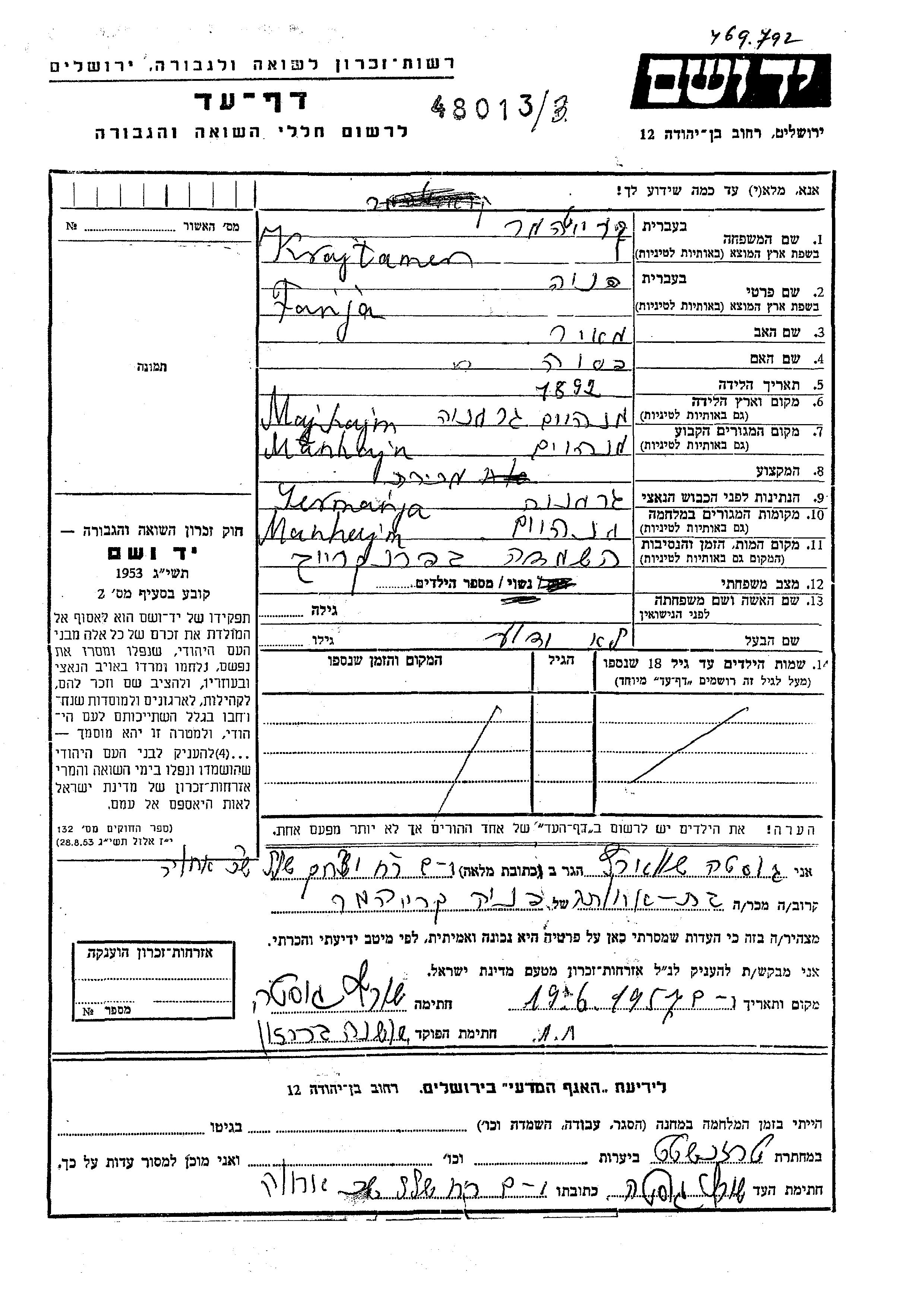 Яд Вашем - Листы свидетельских показаний Мемориального фонда
