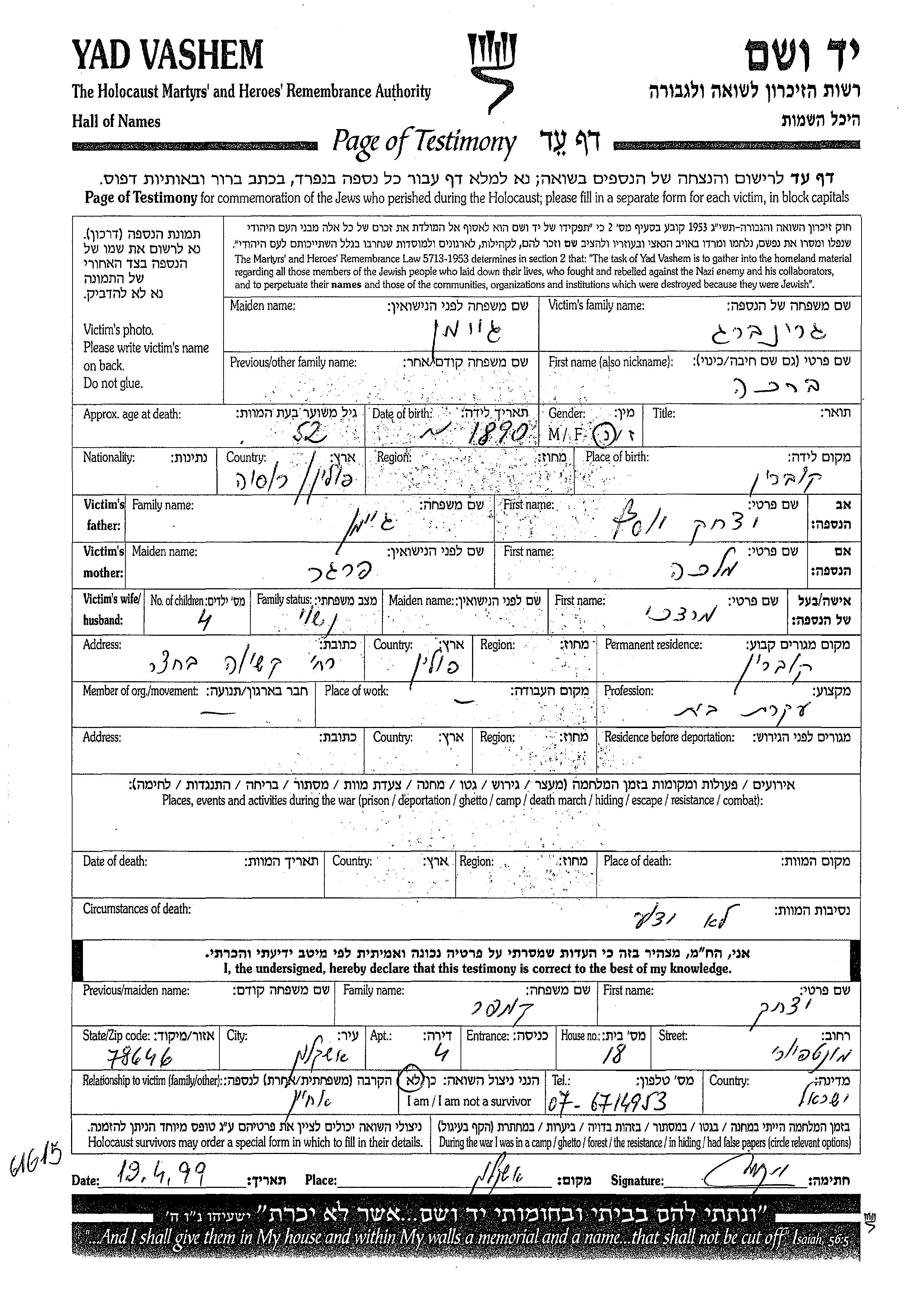 Яд Вашем - Листы свидетельских показаний Мемориального фонда