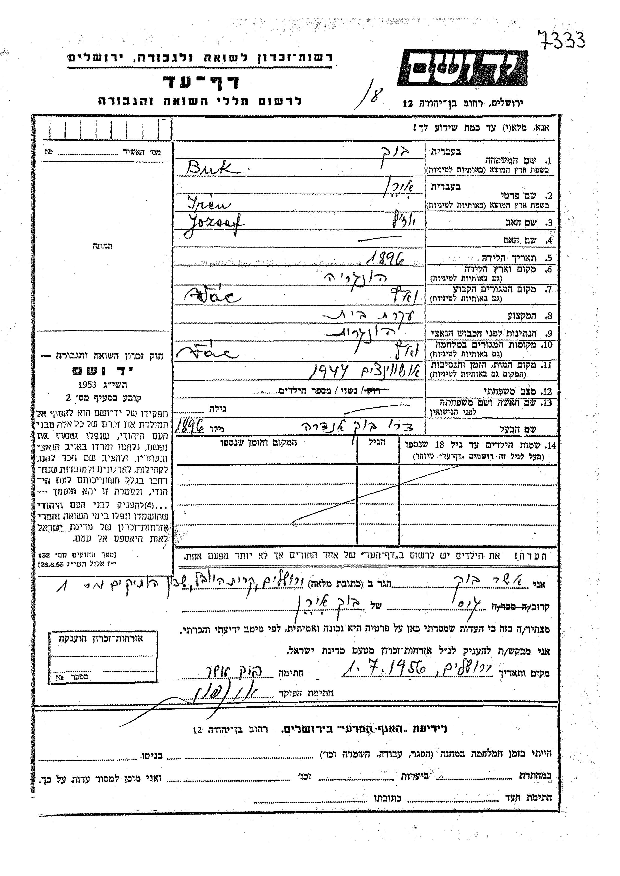 Бук | Ирен | 1896 | Вац, Венгрия | Лист свидетельских показаний |