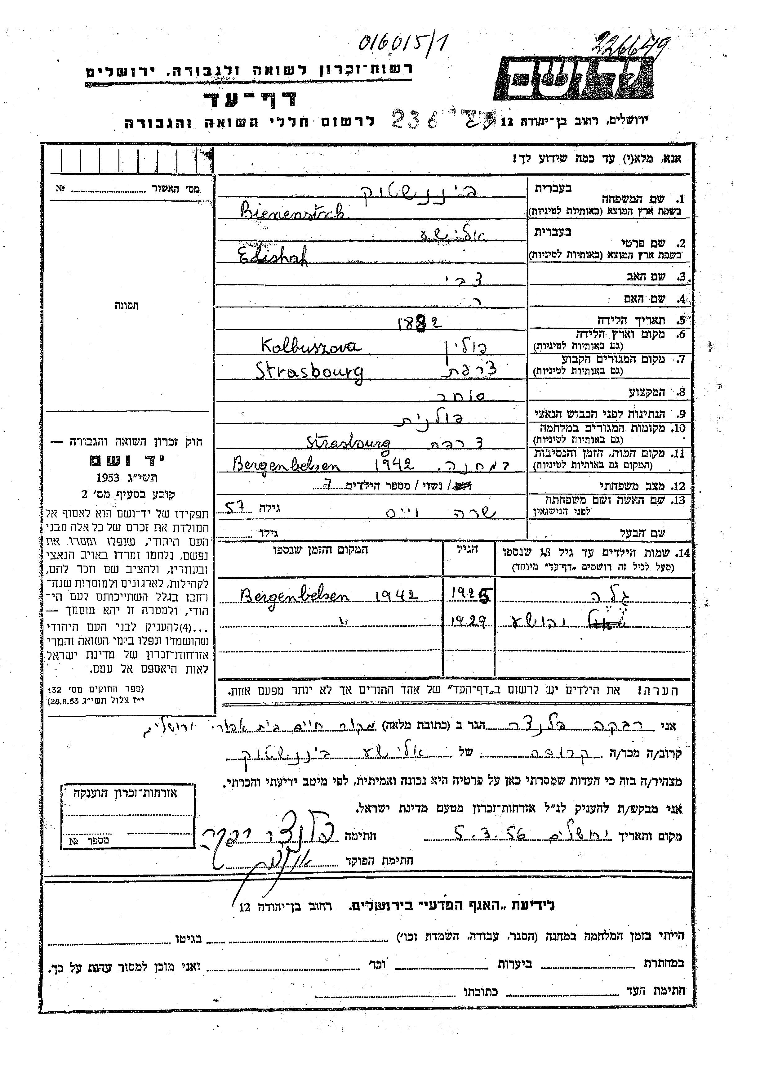 Биненшток | Элиша | 1883 | Страсбург, Франция | Лист свидетельских показаний |