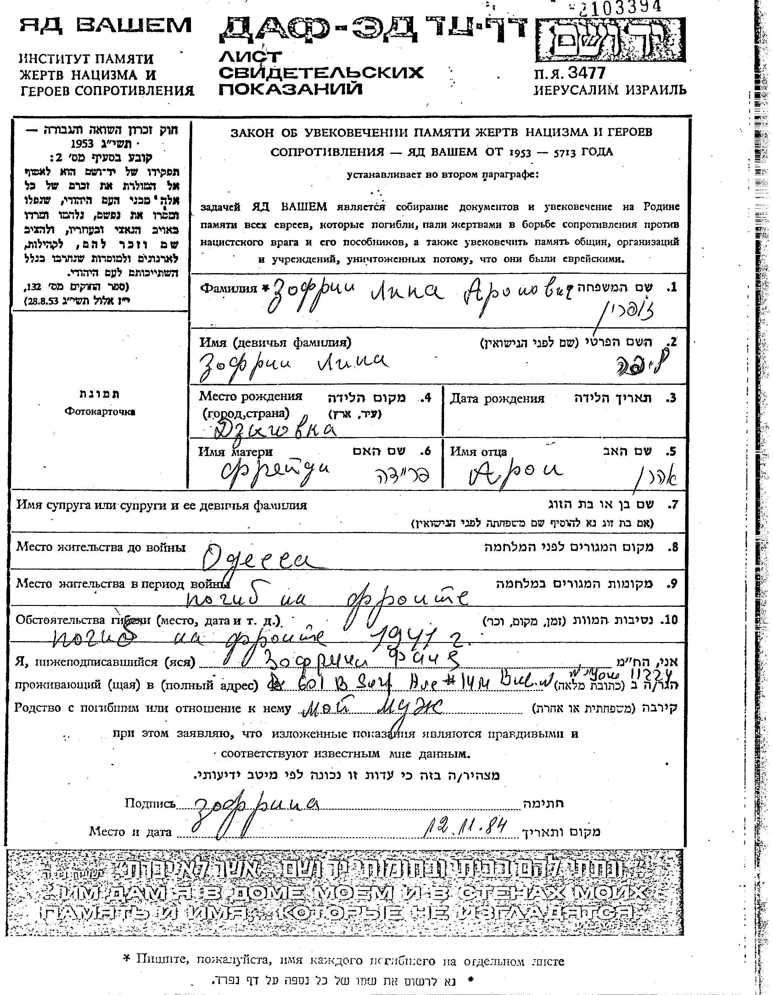 Поиск подателя Листа свидетельских показаний. Поиск по любому имени, включая уменьшительное или прозвище