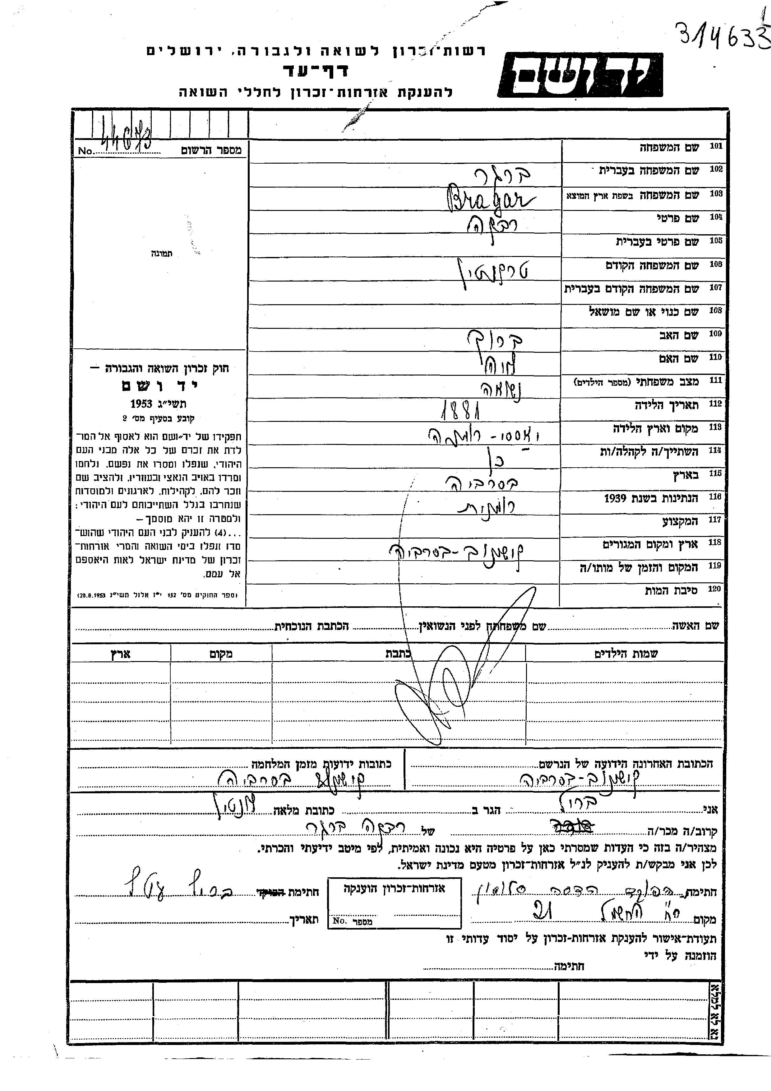 Яд Вашем - Листы свидетельских показаний Мемориального фонда