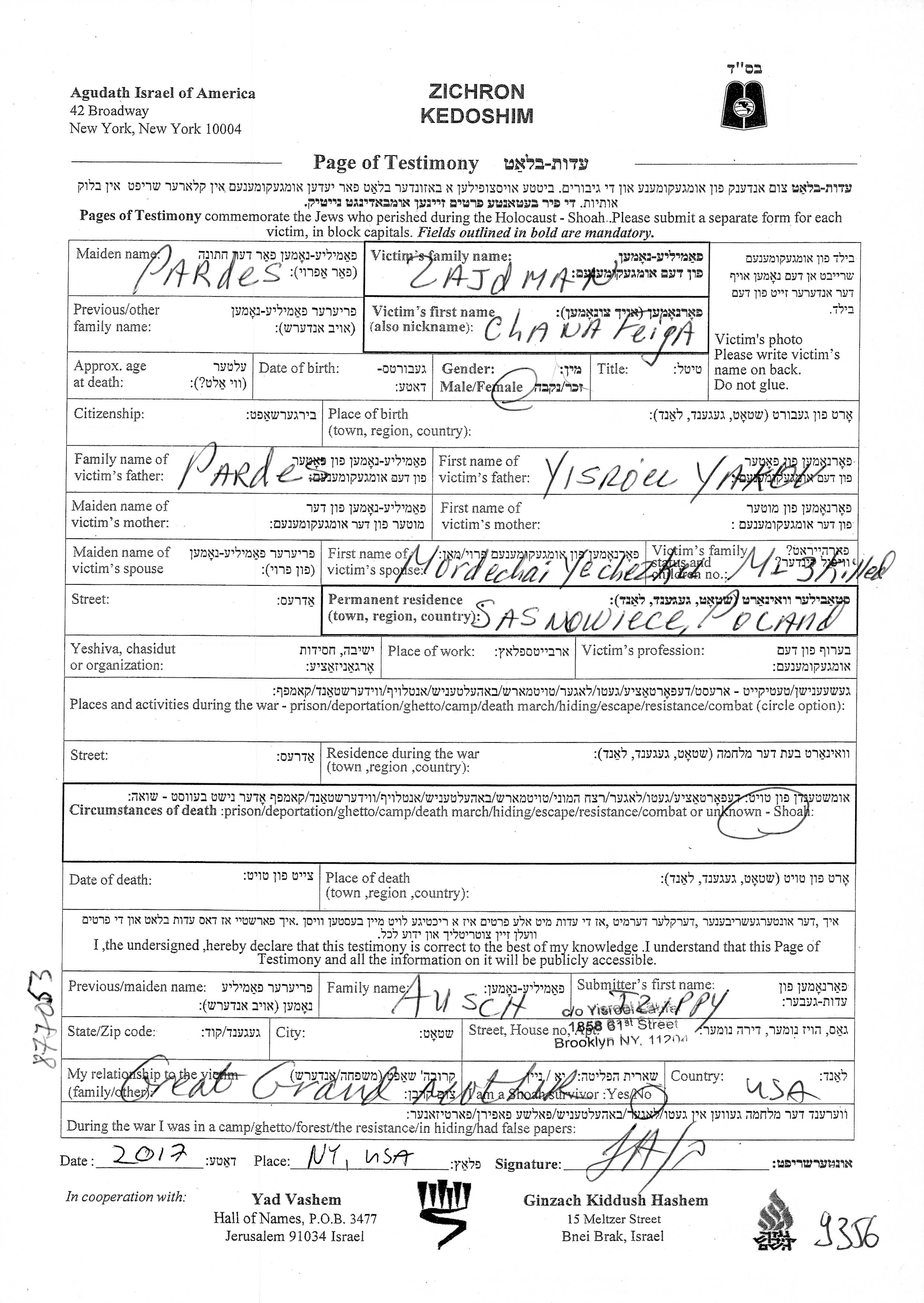 Яд Вашем - Листы свидетельских показаний Мемориального фонда