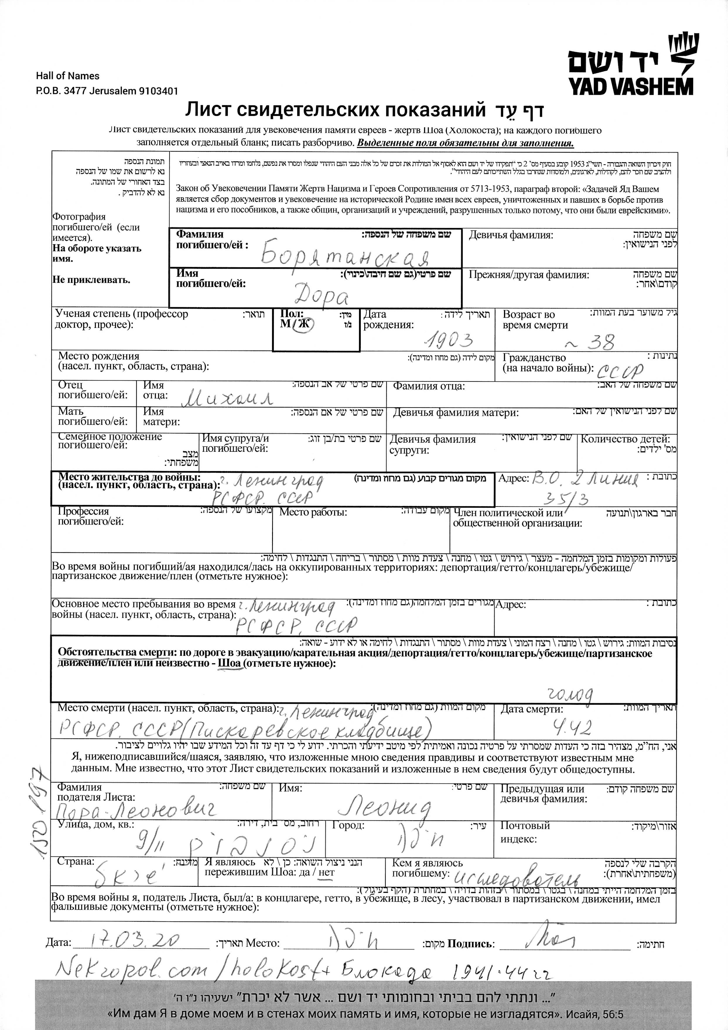 Поиск подателя Листа свидетельских показаний. Поиск по любому имени, включая уменьшительное или прозвище