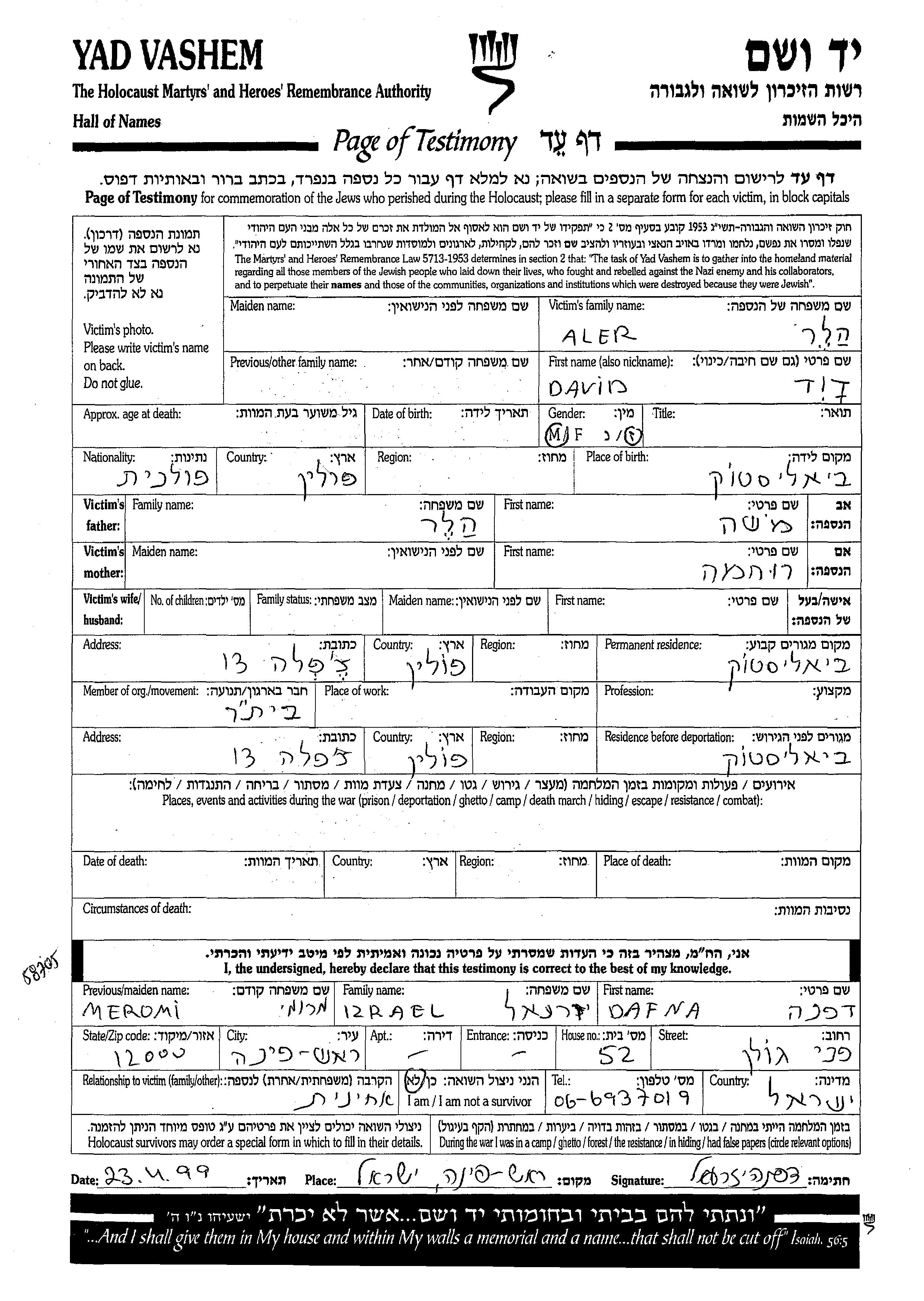Поиск подателя Листа свидетельских показаний. Поиск по любому имени, включая уменьшительное или прозвище
