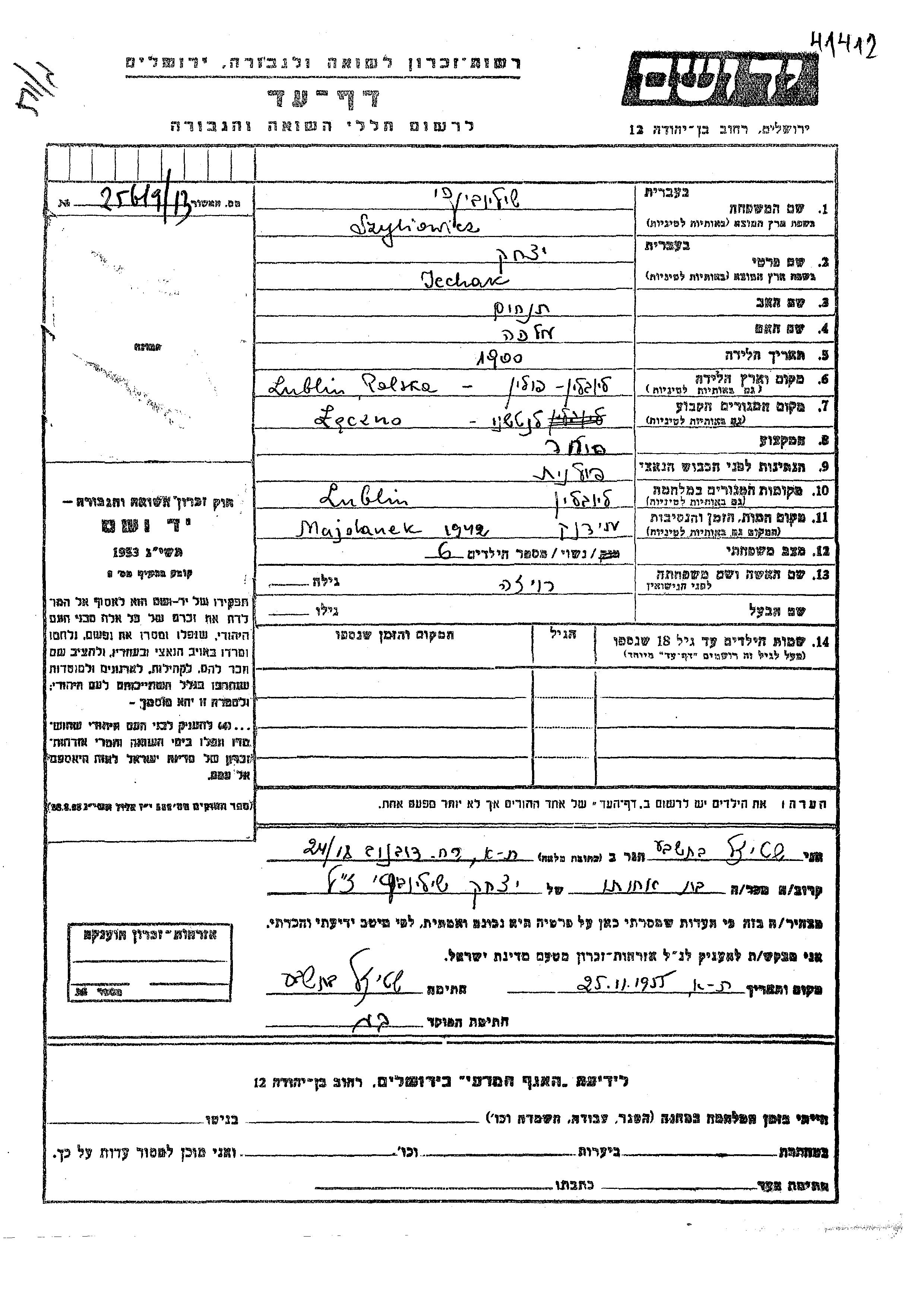 Яд Вашем - Листы свидетельских показаний Мемориального фонда