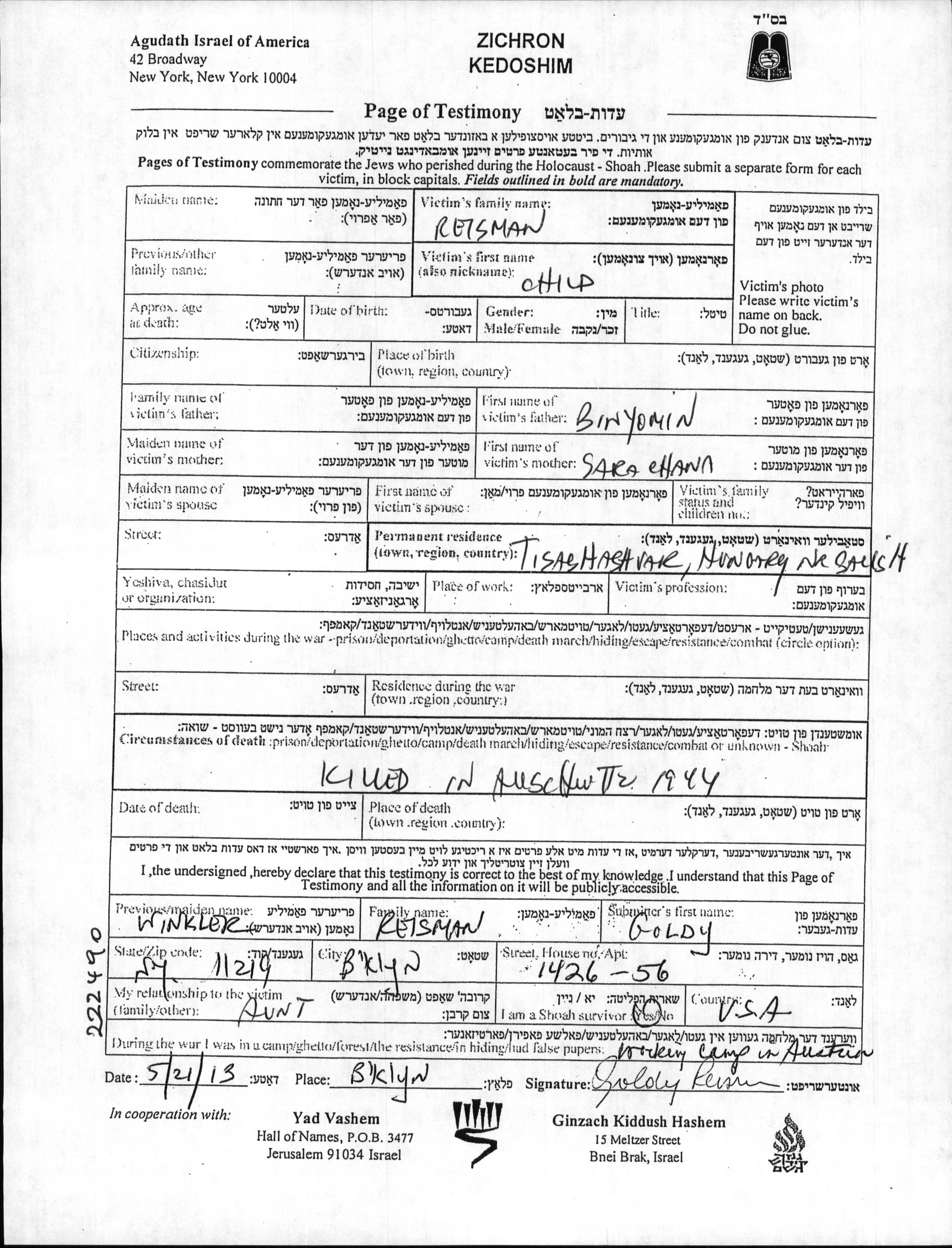 Поиск подателя Листа свидетельских показаний. Поиск по любому имени, включая уменьшительное или прозвище