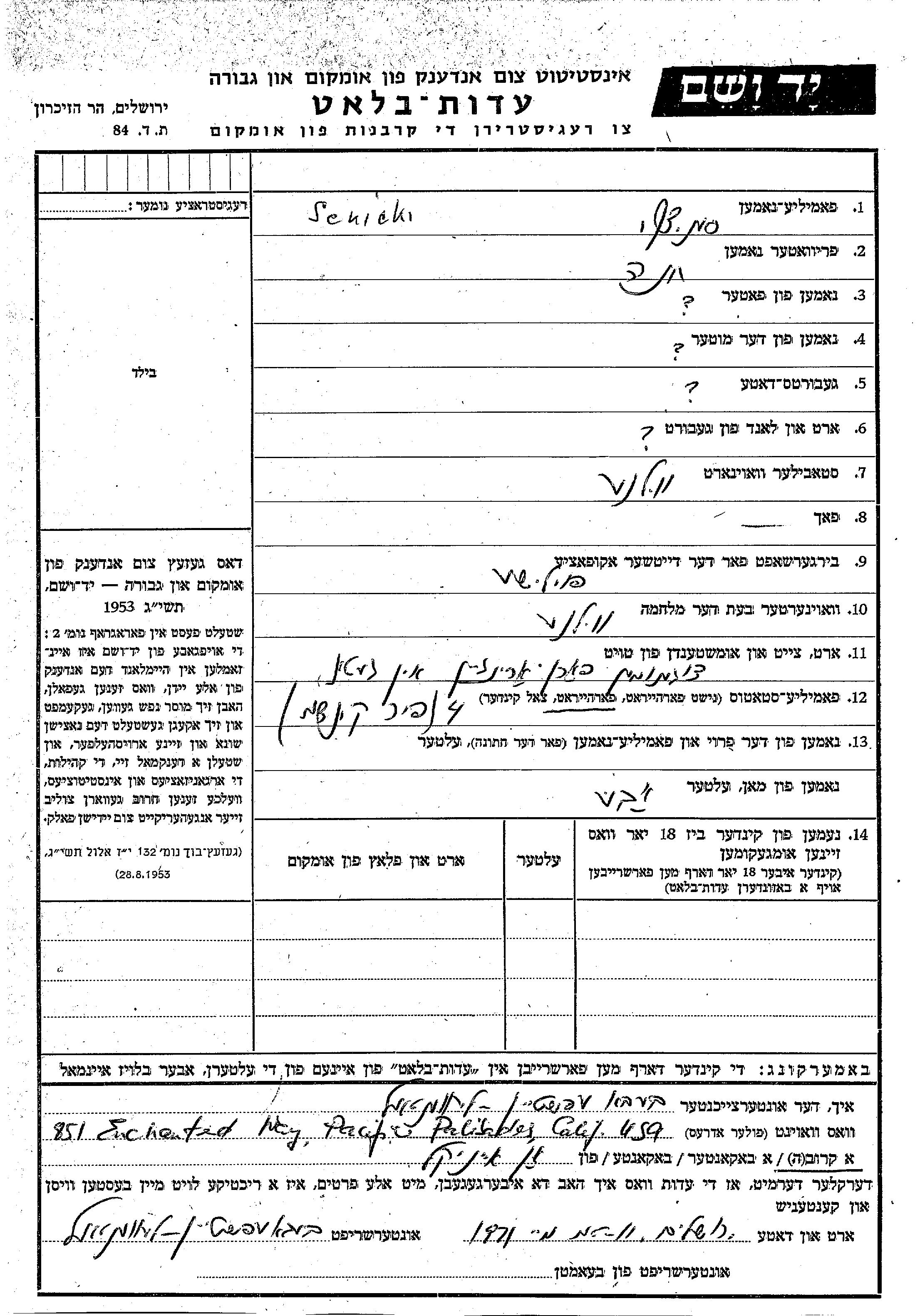 Яд Вашем - Листы свидетельских показаний Мемориального фонда