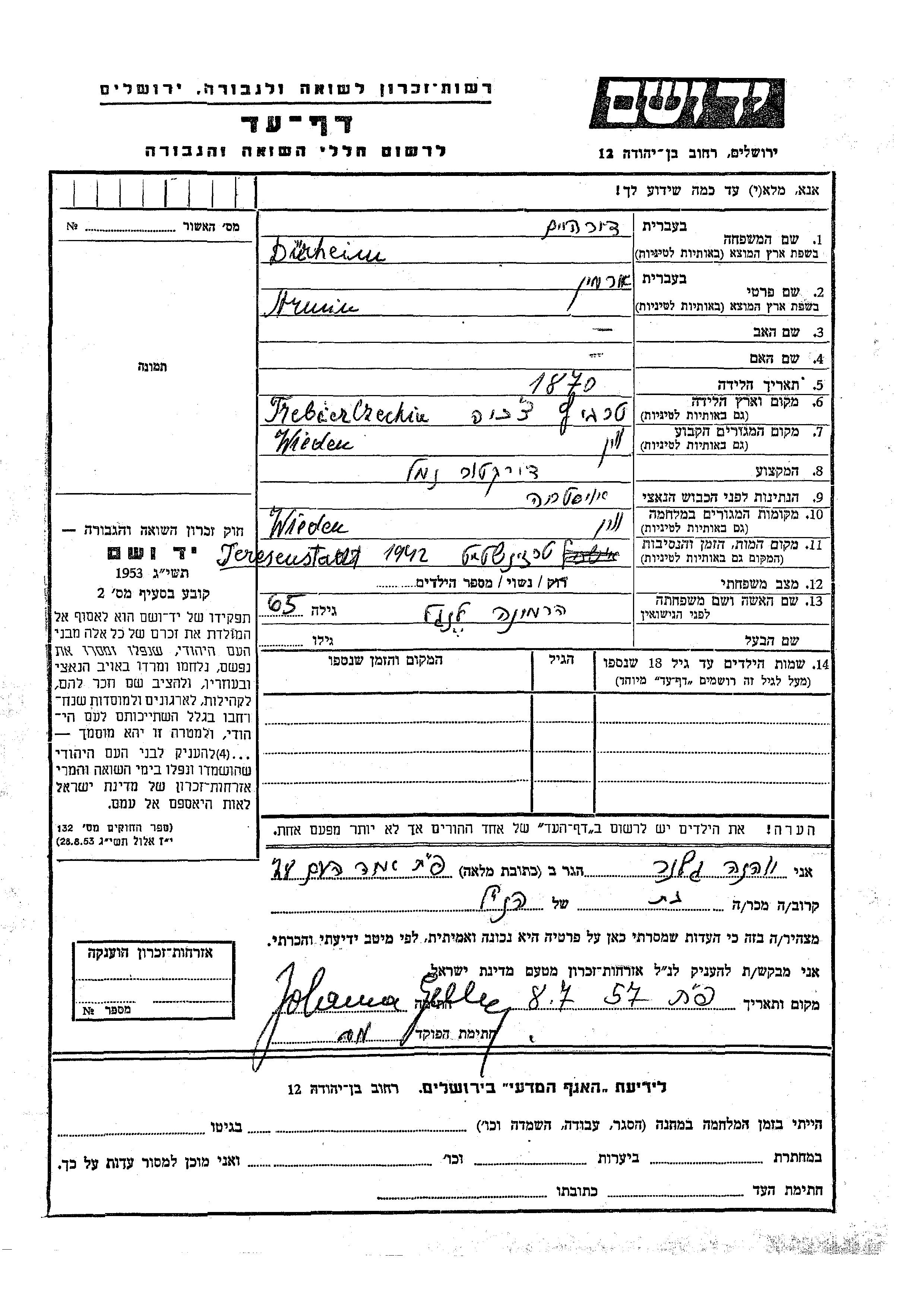 Яд Вашем - Листы свидетельских показаний Мемориального фонда