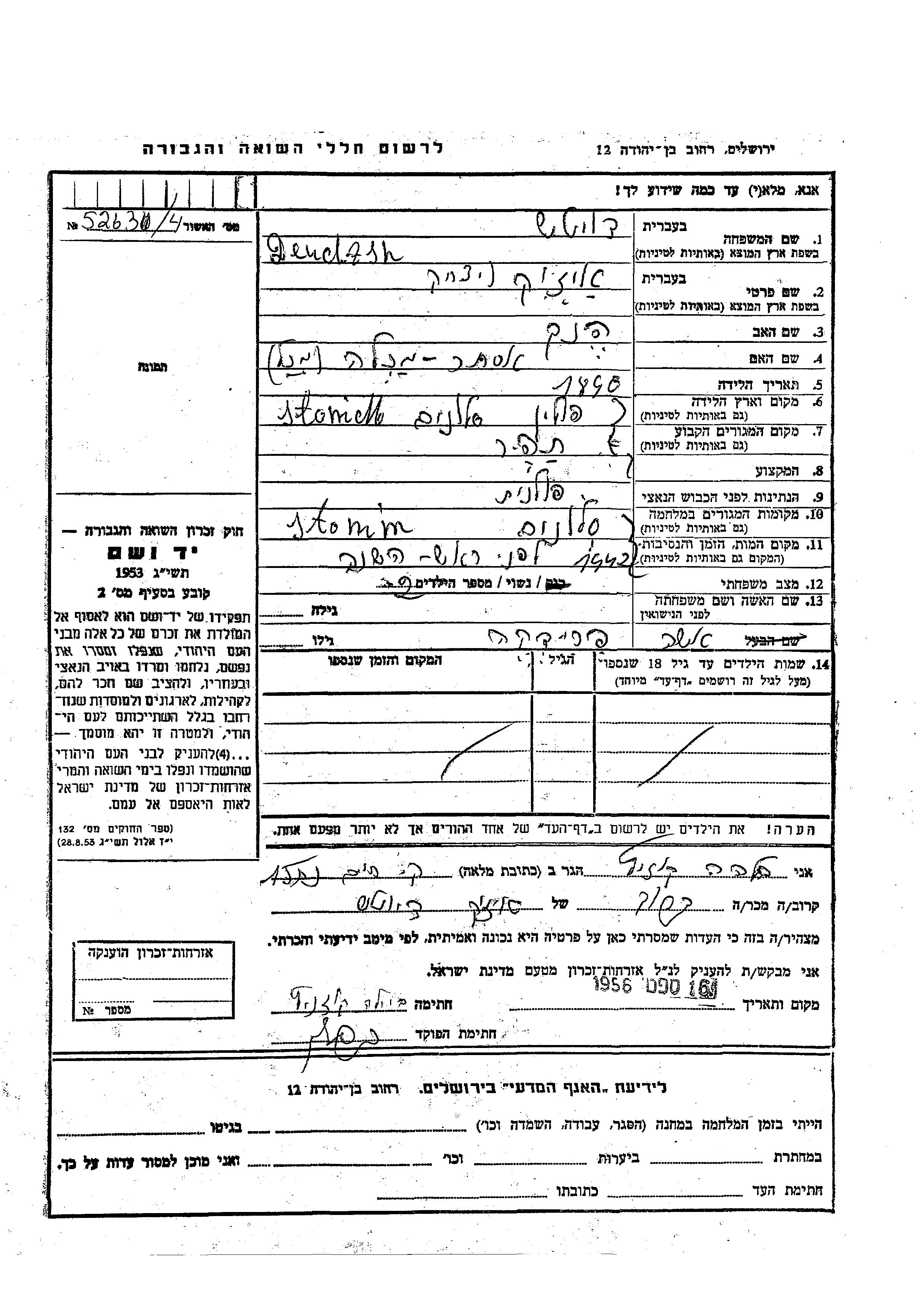 Дойч Айзик 1890 Слоним, Польша Лист свидетельских показаний