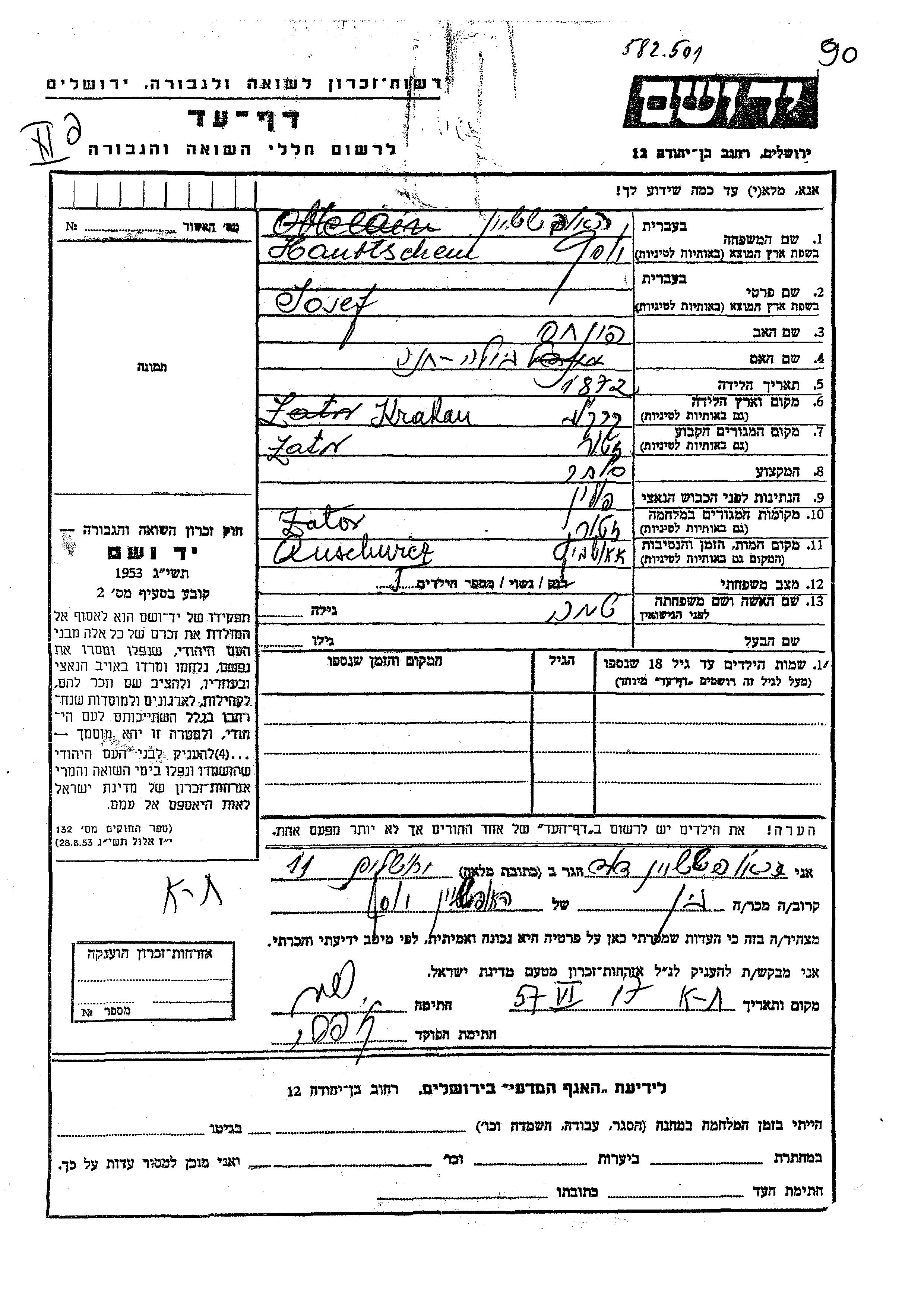 Яд Вашем - Листы свидетельских показаний Мемориального фонда
