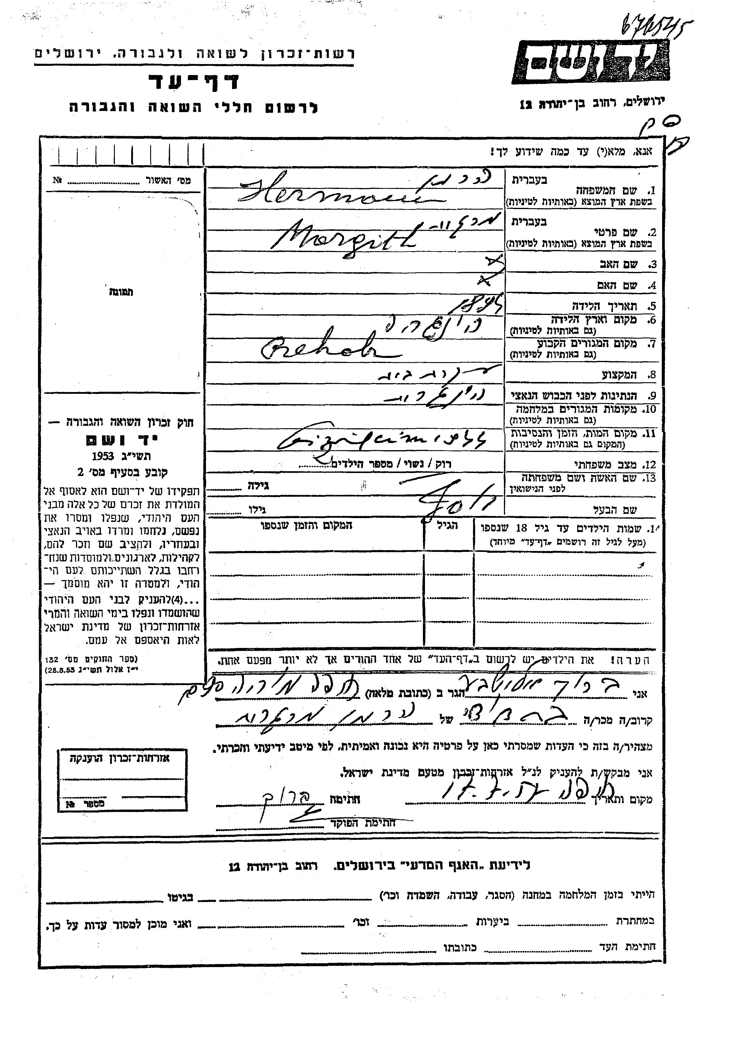Яд Вашем - Листы свидетельских показаний Мемориального фонда