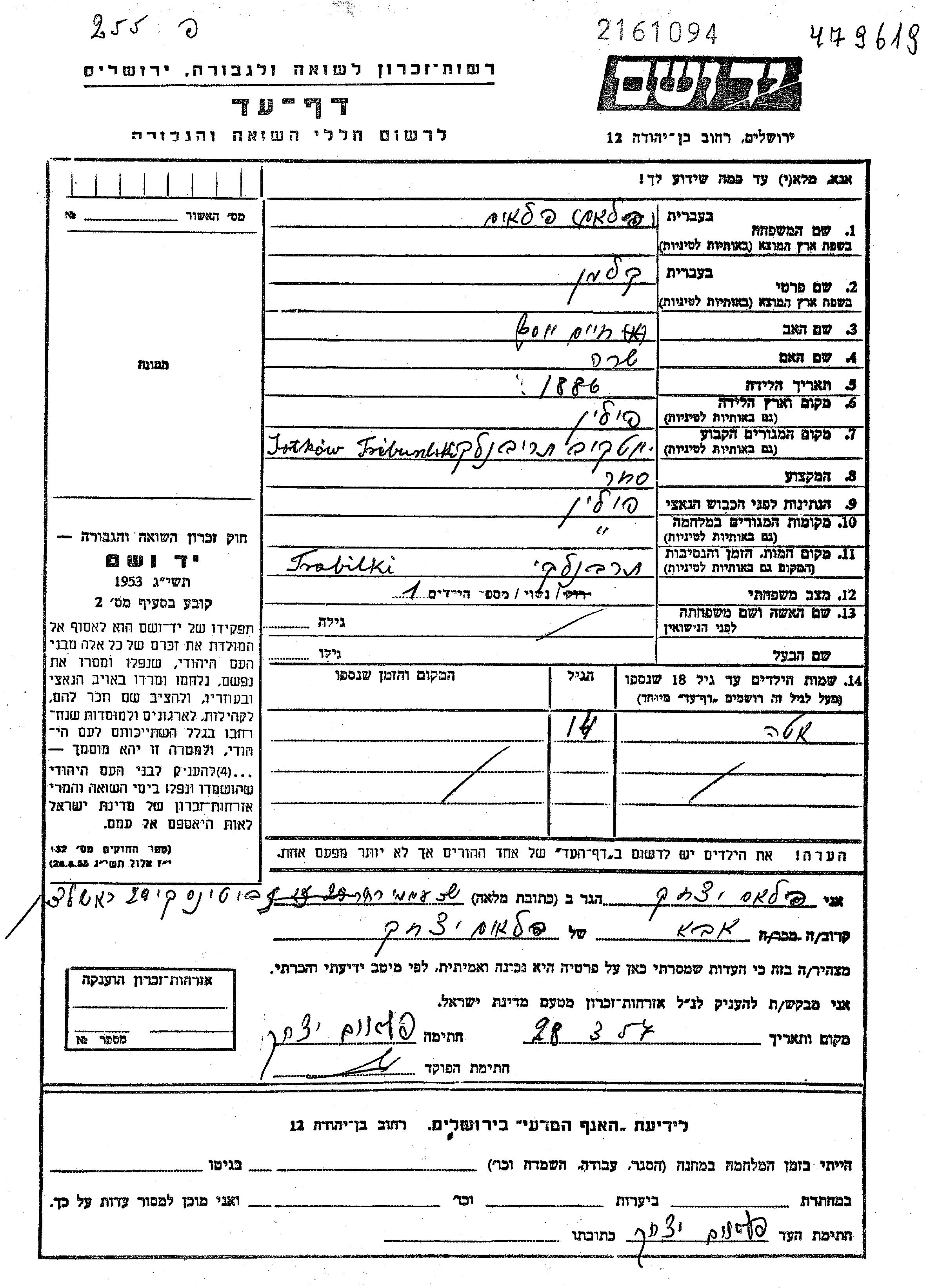 Яд Вашем - Листы свидетельских показаний Мемориального фонда