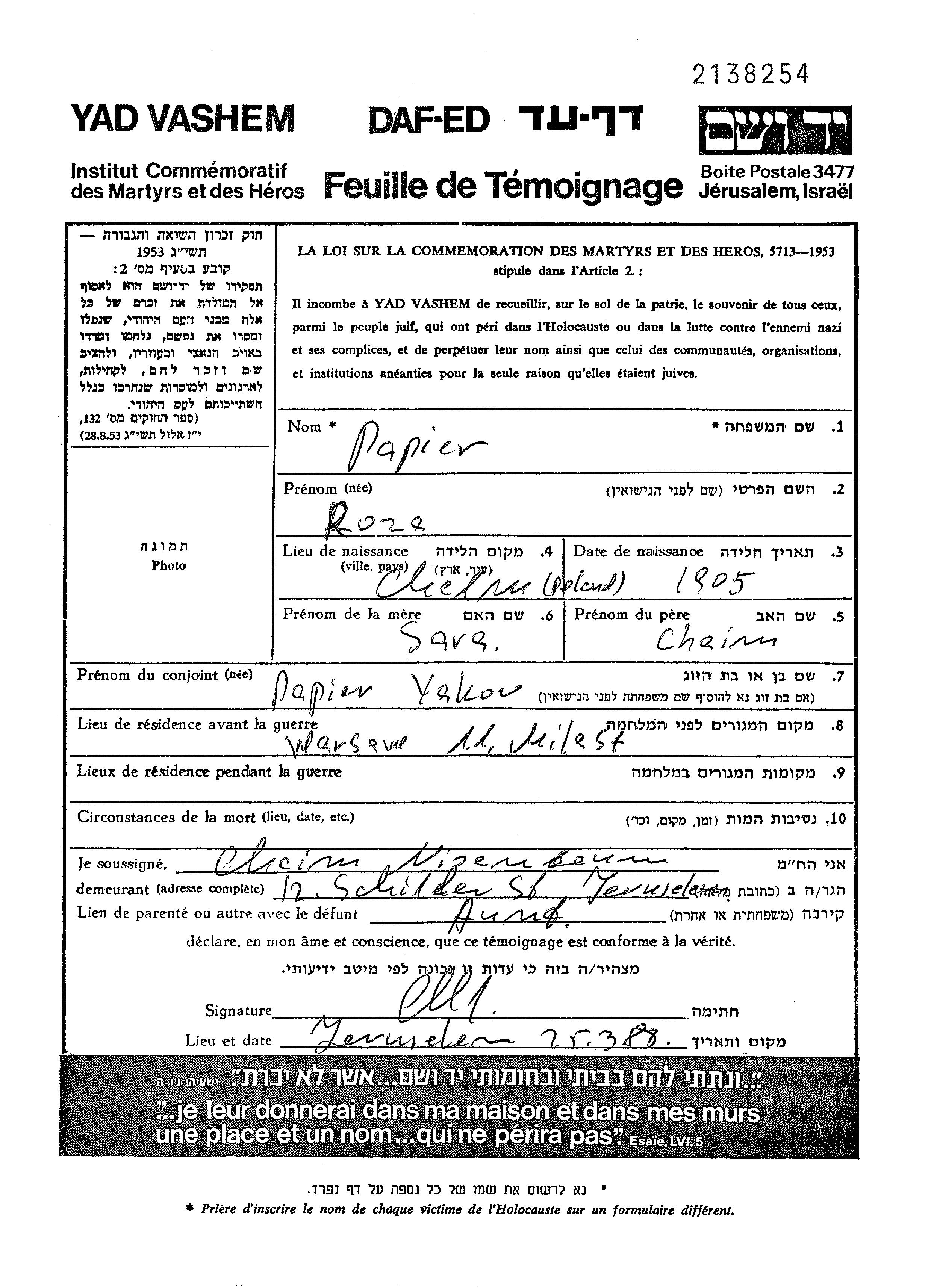| Папир | Роза | Варшава, Польша | Лист свидетельских показаний | |