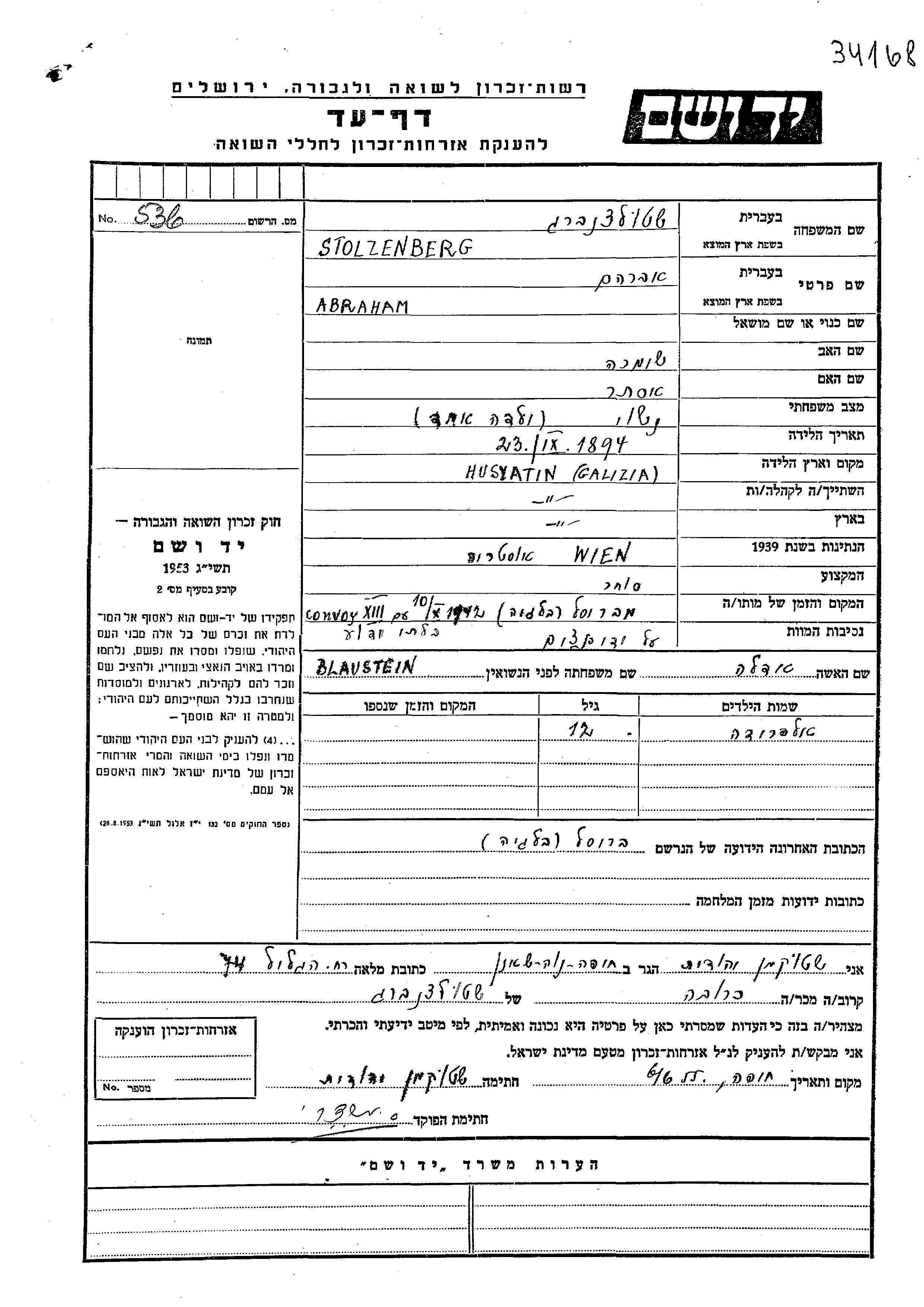 Штольценберг | Авраам | 23/09/1894 | Гусятин, Польша | Photos |