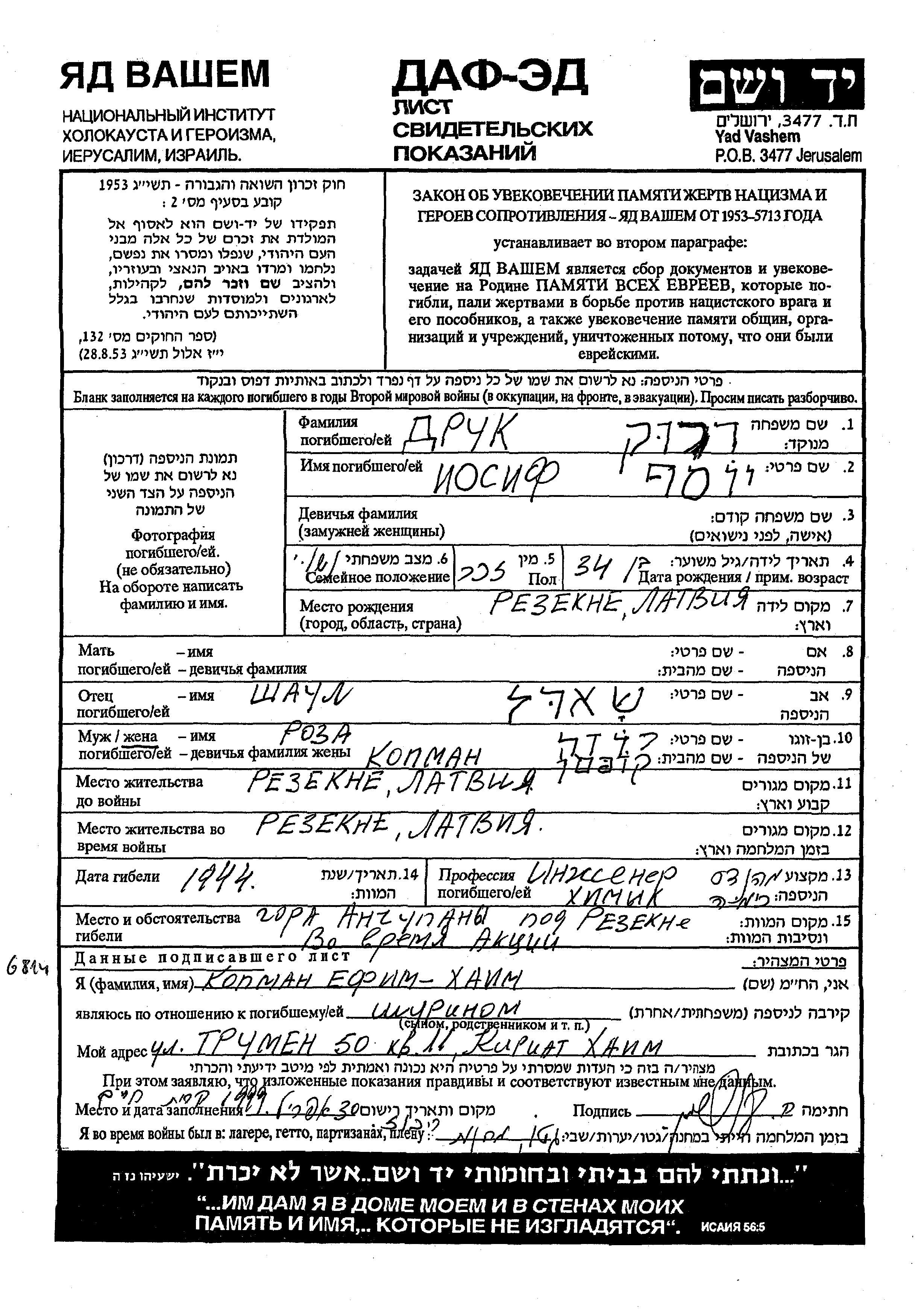 | Друк | Иосиф | Резекне, Латвия | Лист свидетельских показаний |
