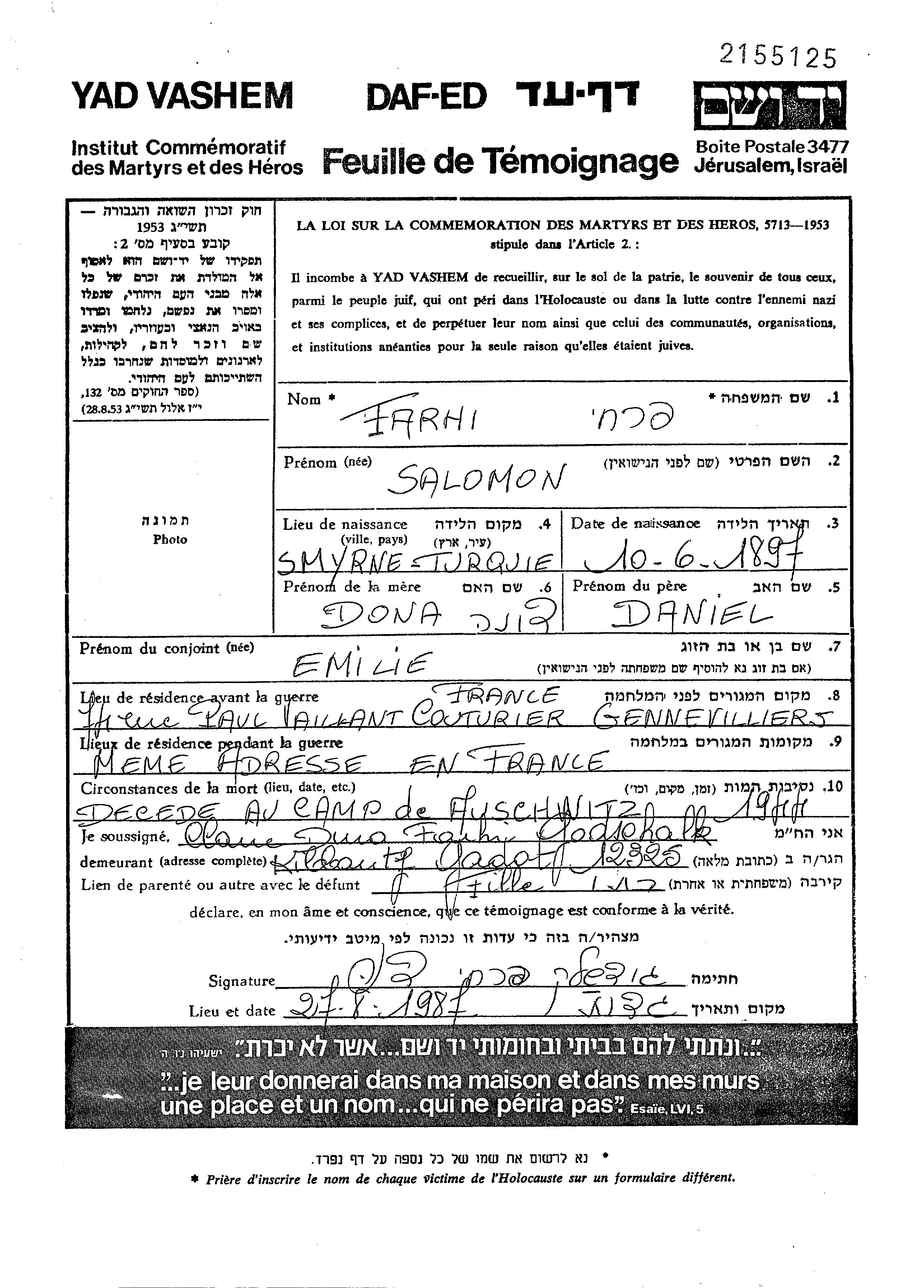 Фархи | Саломон | 1897 | Смирна, Турция | Список депортированных из Франции |