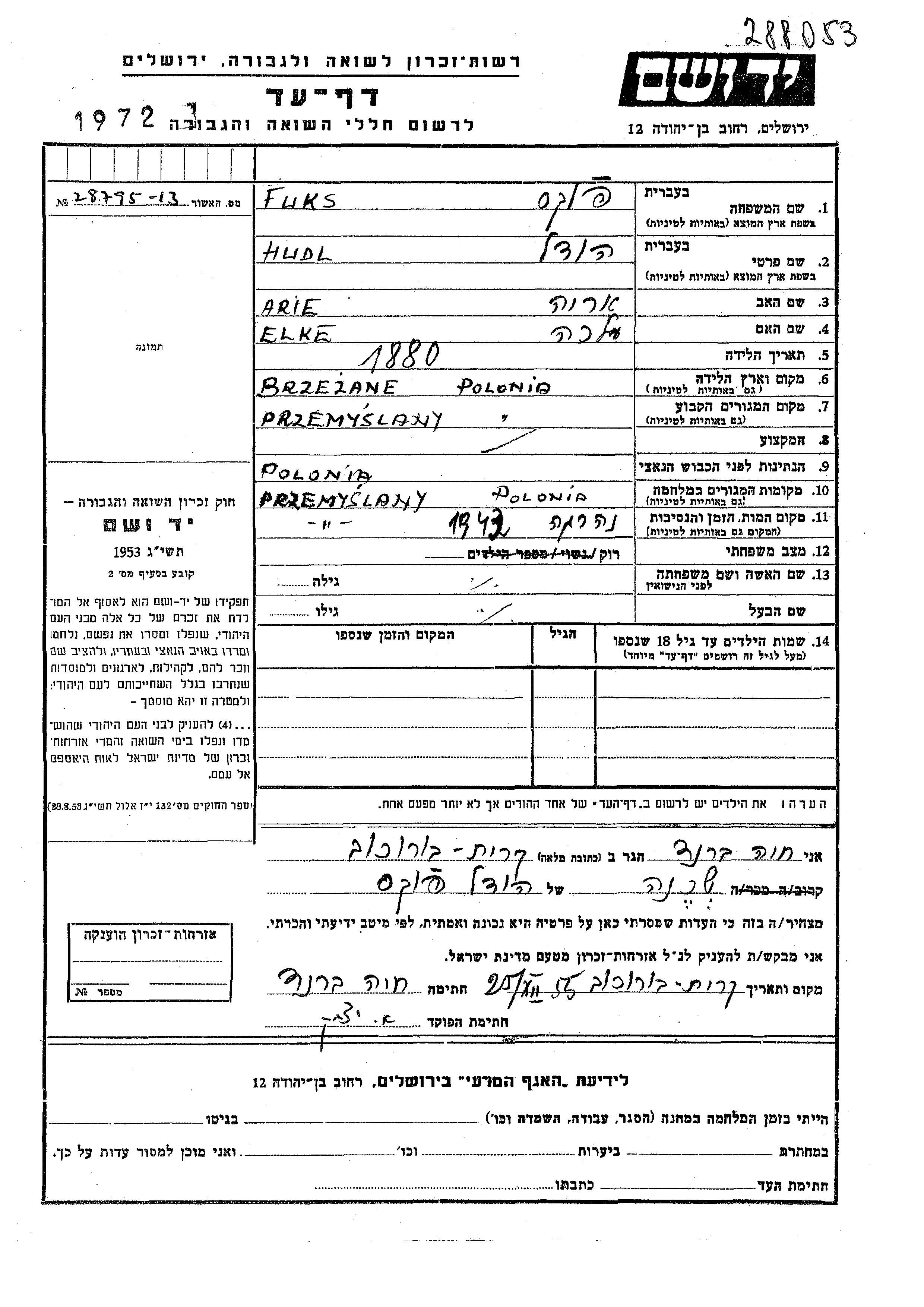 Яд Вашем - Листы свидетельских показаний Мемориального фонда
