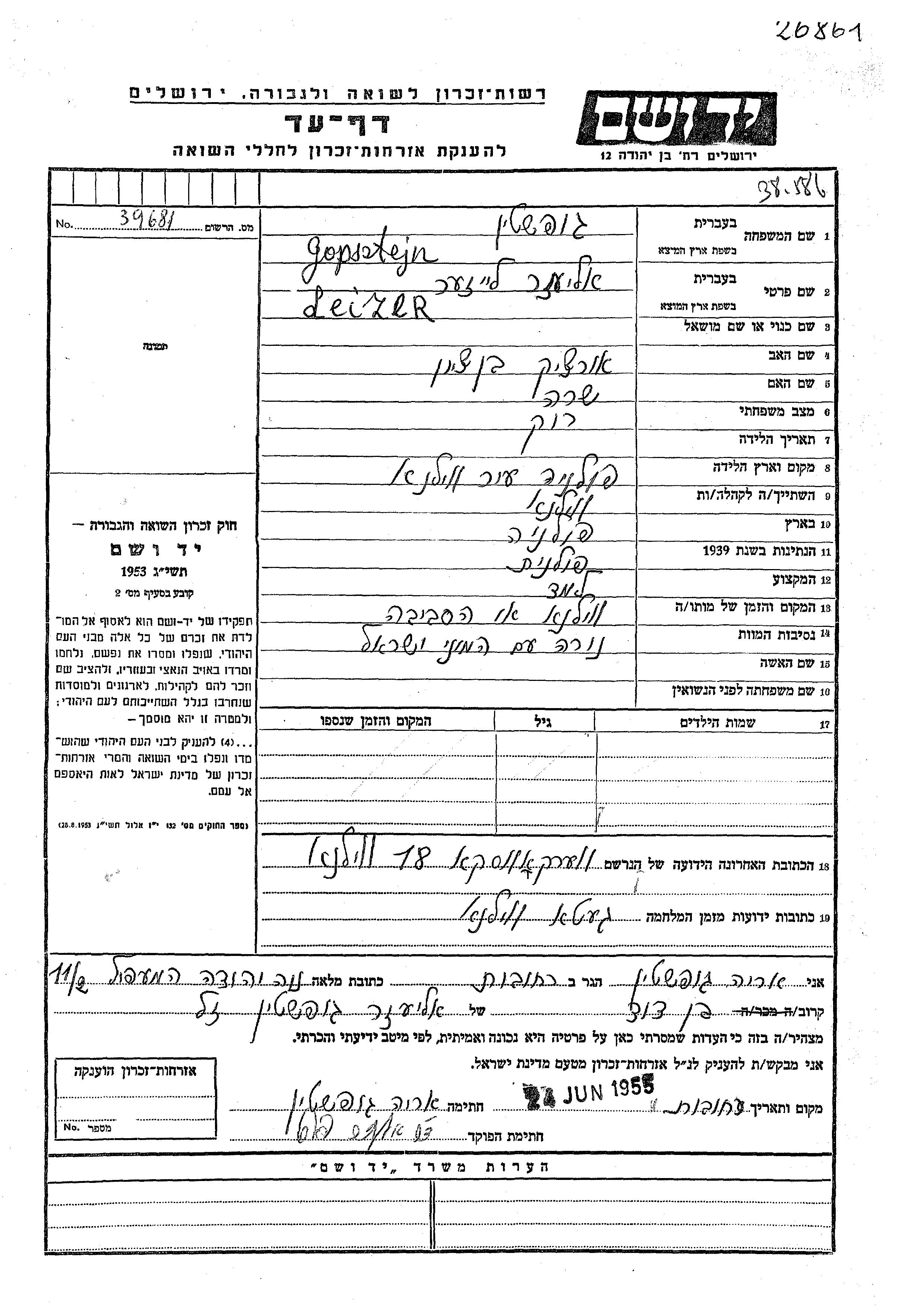 Гопштейн Гофштейн Элиэзер Вильно, Польша Лист свидетельских показаний