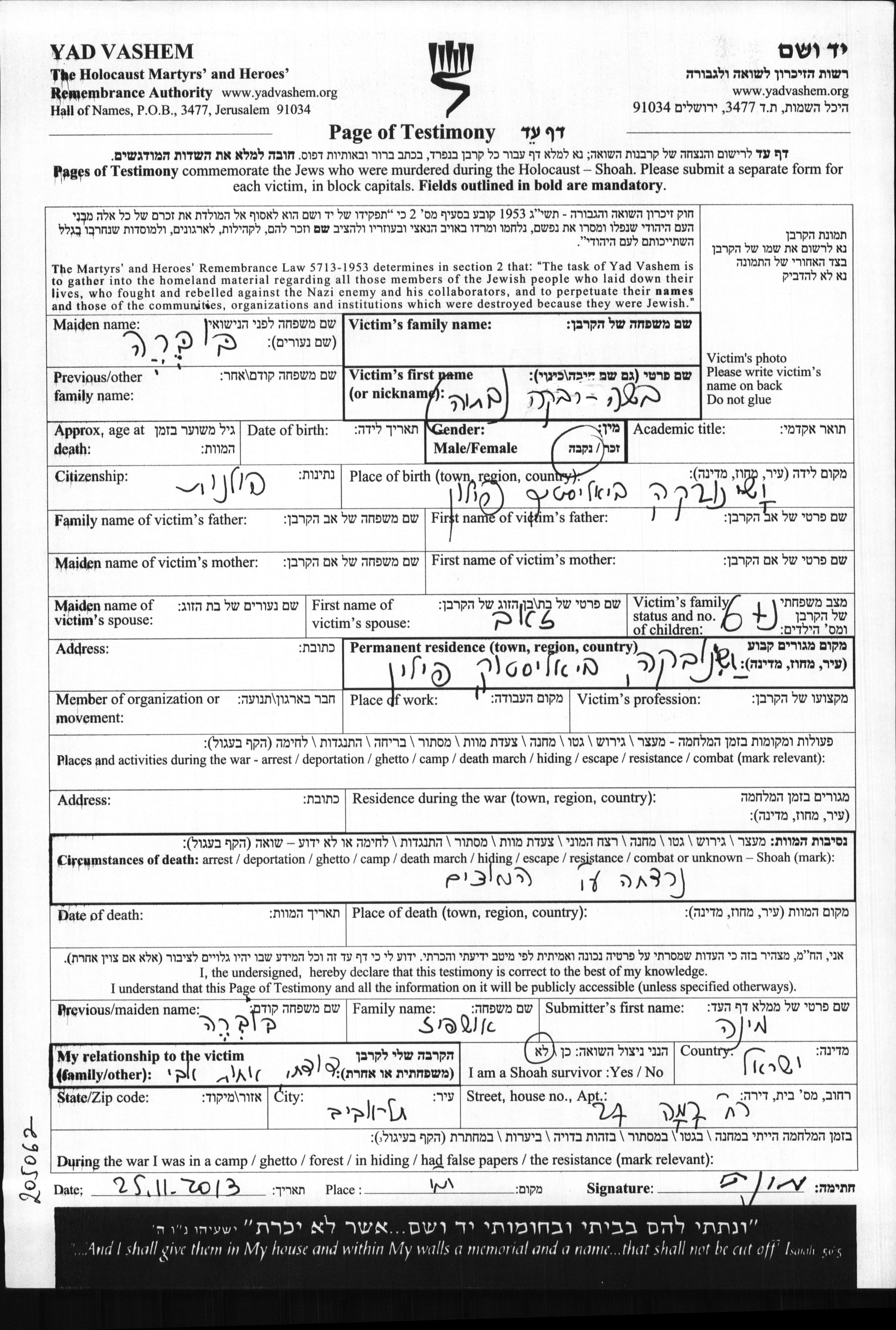 Яд Вашем - Листы свидетельских показаний Мемориального фонда