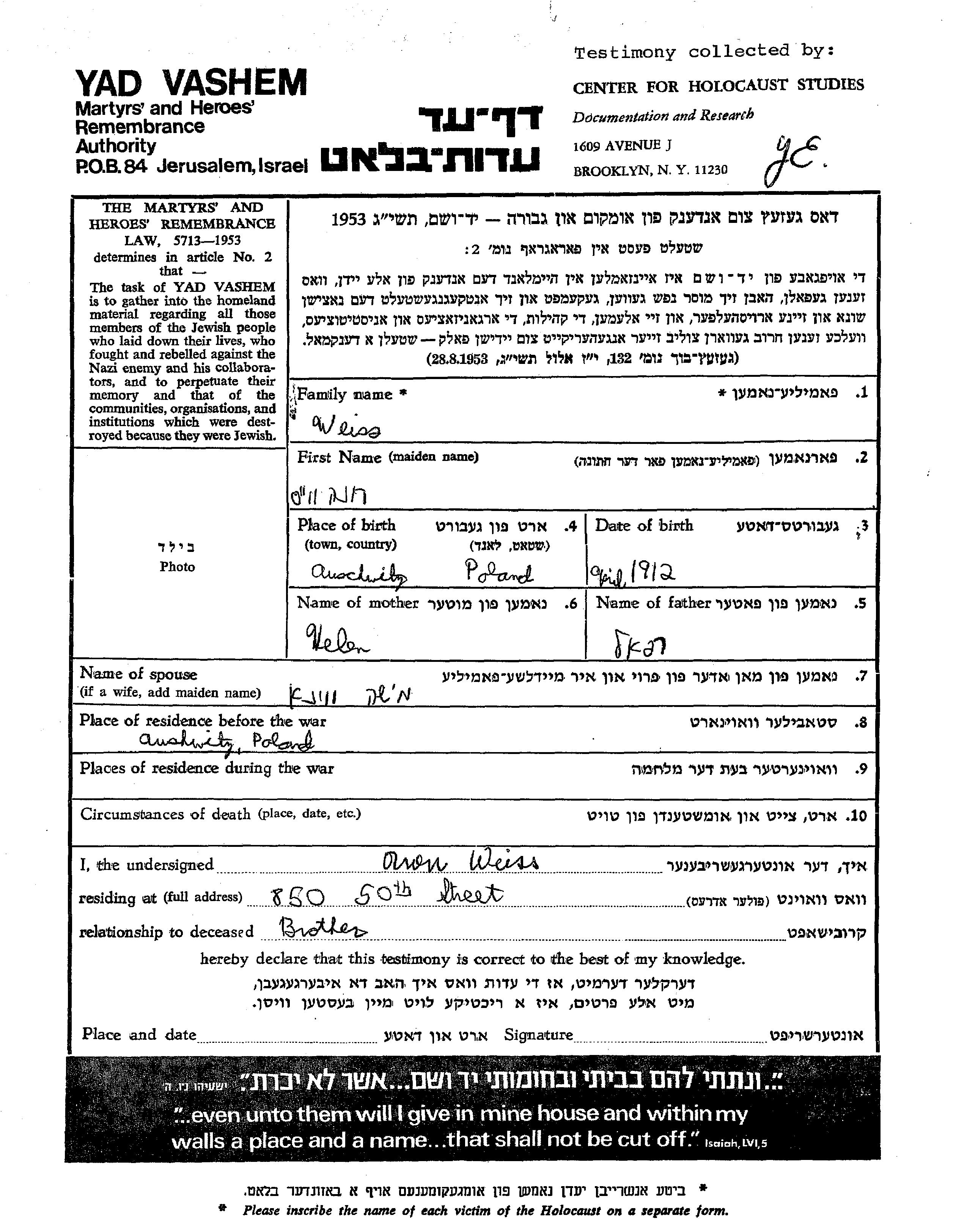 Поиск подателя Листа свидетельских показаний. Поиск по любому имени, включая уменьшительное или прозвище