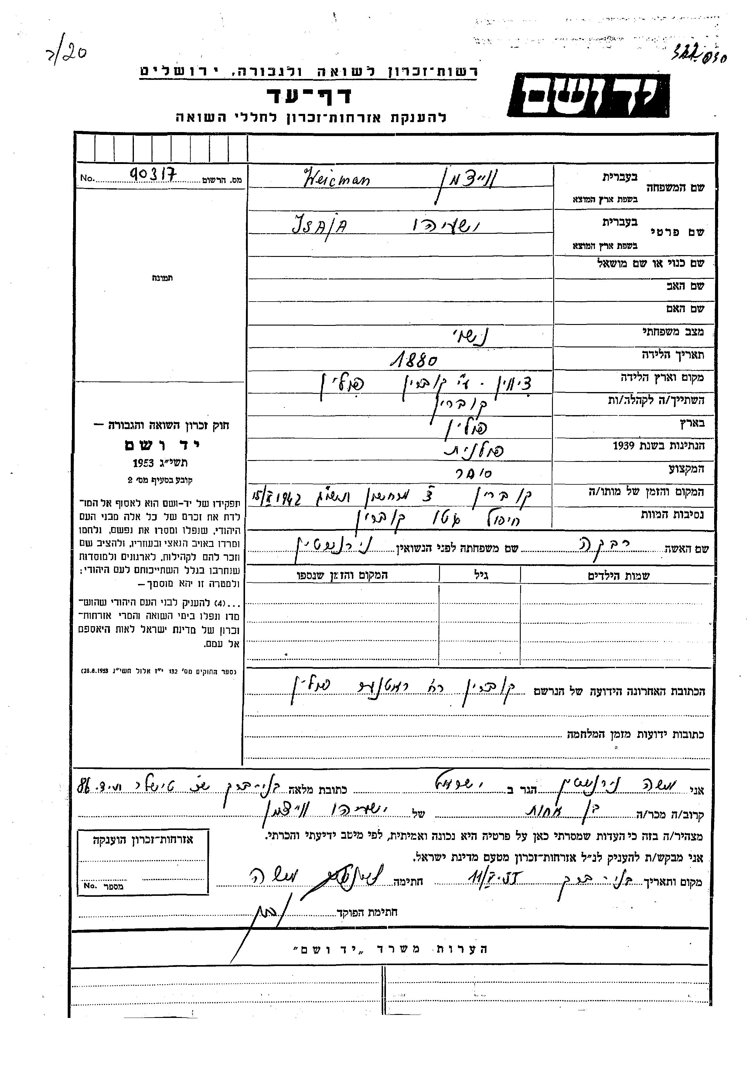 Яд Вашем - Листы свидетельских показаний Мемориального фонда