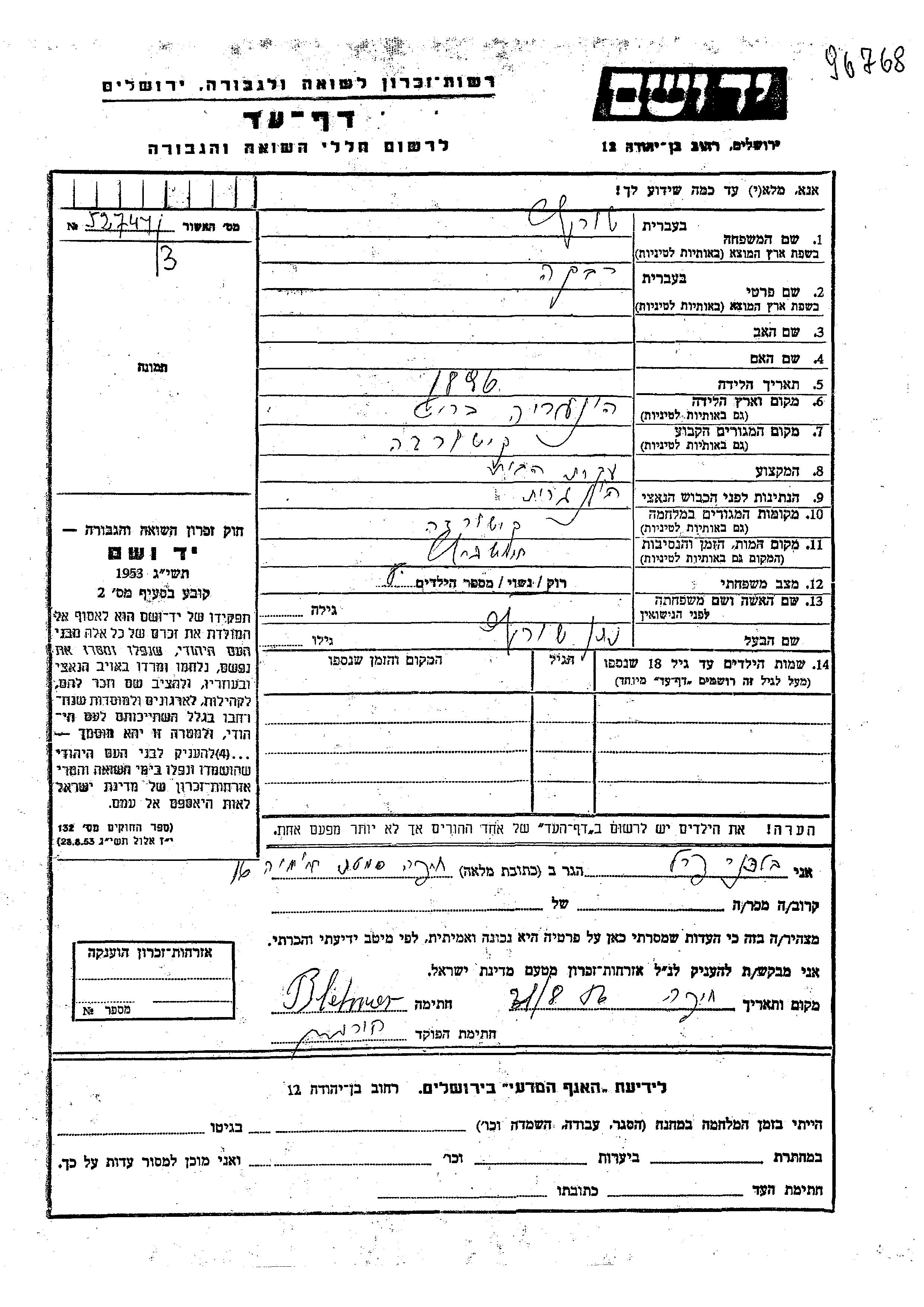 Яд Вашем - Листы свидетельских показаний Мемориального фонда