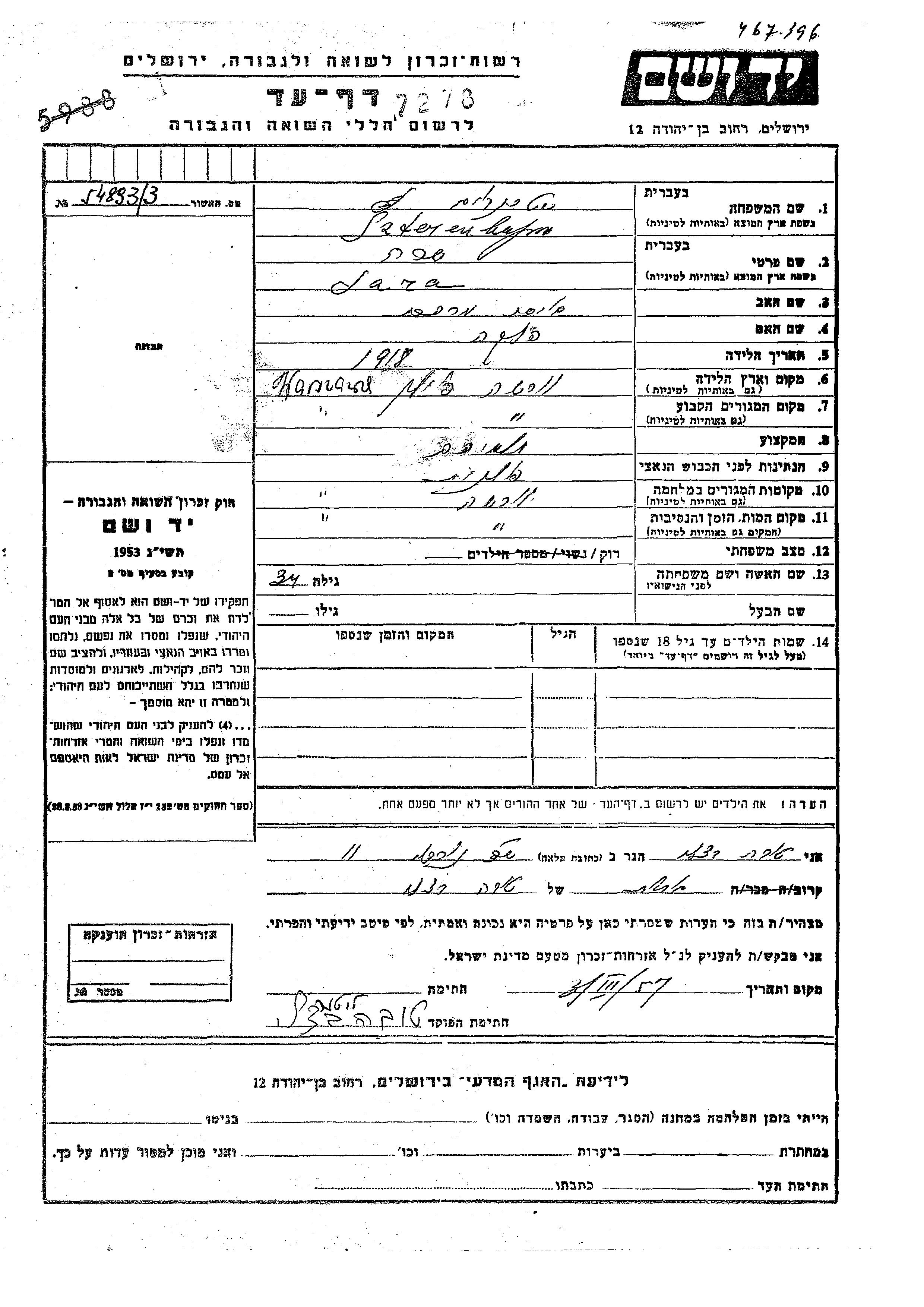 Яд Вашем - Листы свидетельских показаний Мемориального фонда