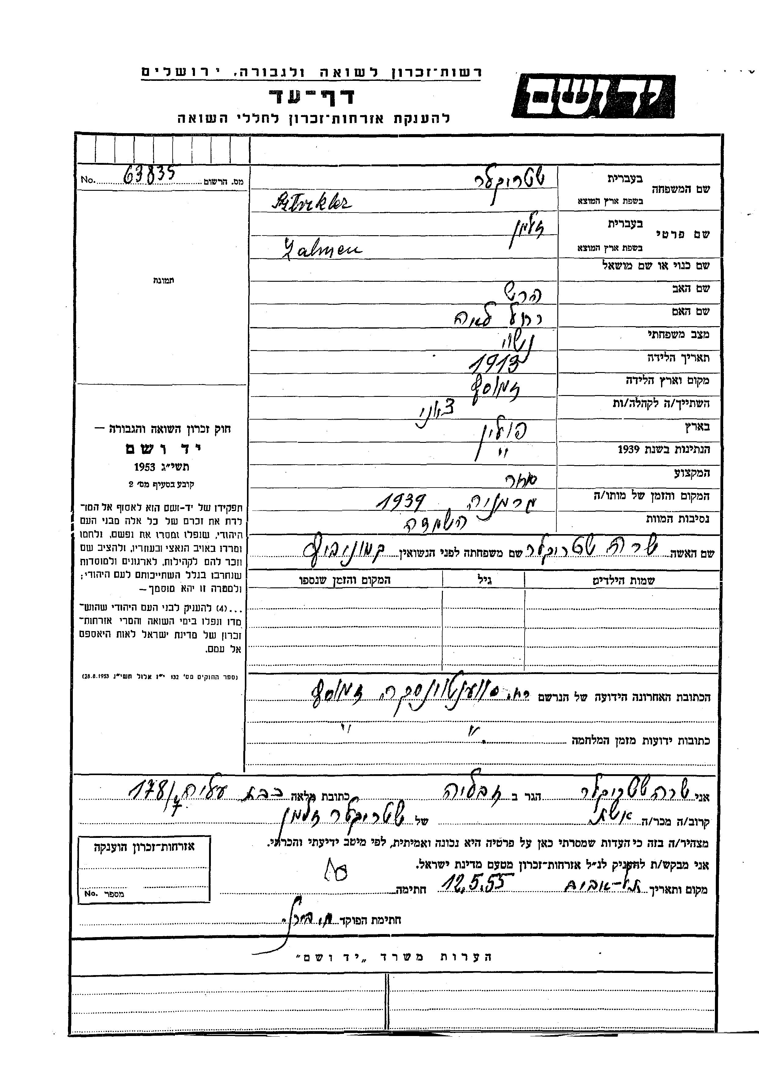 Яд Вашем - Листы свидетельских показаний Мемориального фонда