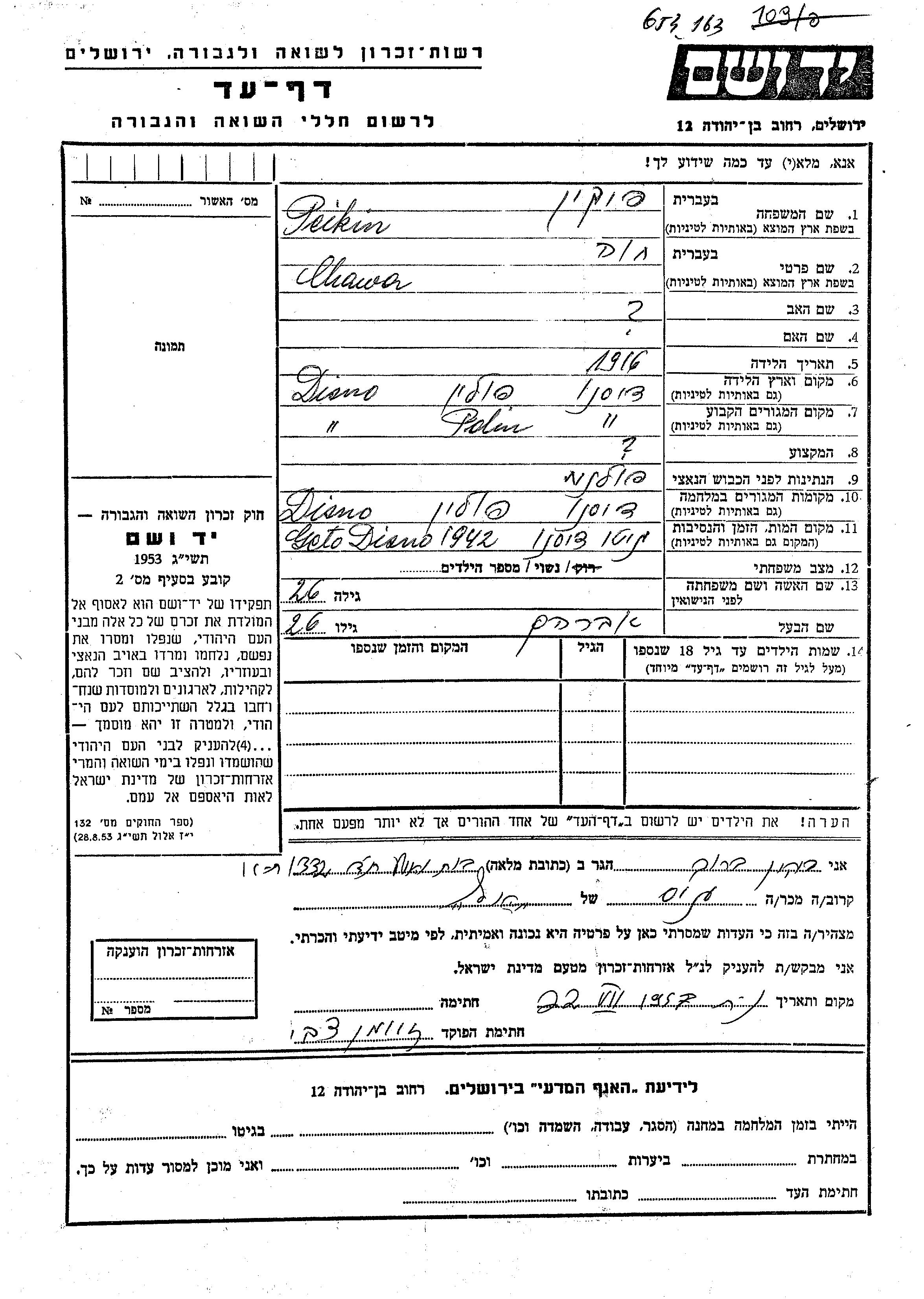 Яд Вашем - Листы свидетельских показаний Мемориального фонда