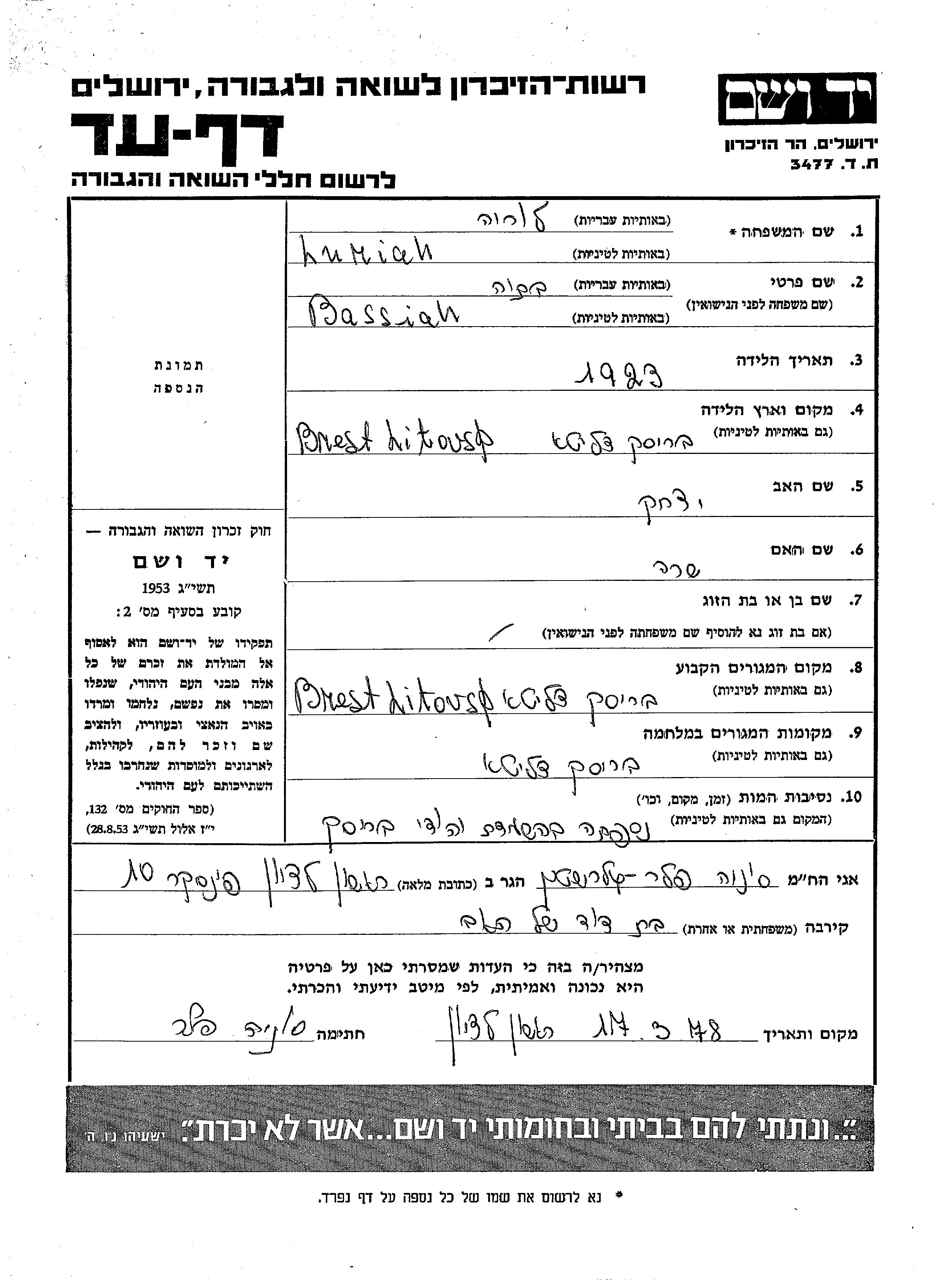 Луриа | Бася | 1923 | Брест-Литовск, Польша | Лист свидетельских показаний |