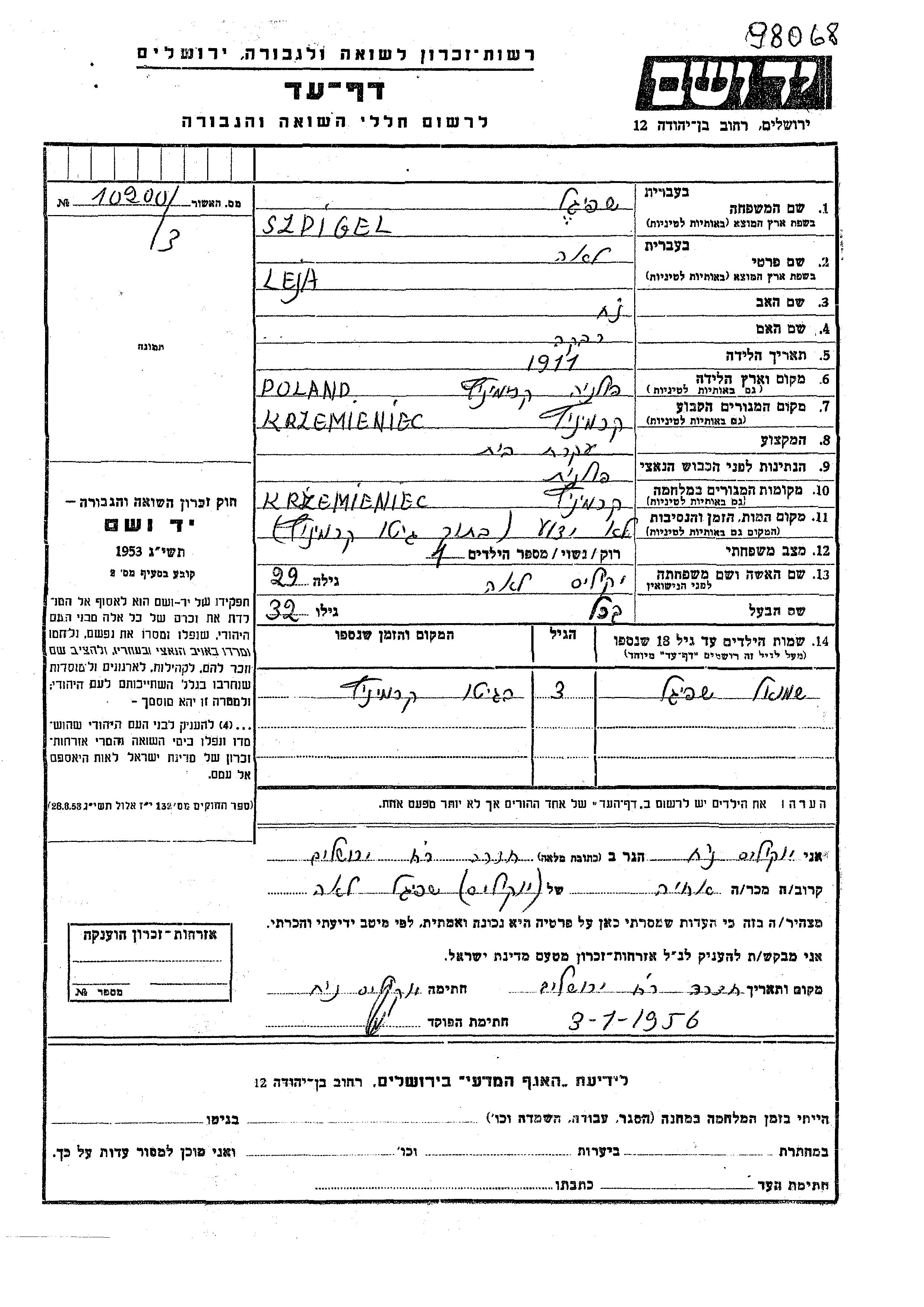 Поиск подателя Листа свидетельских показаний. Поиск по любому имени, включая уменьшительное или прозвище